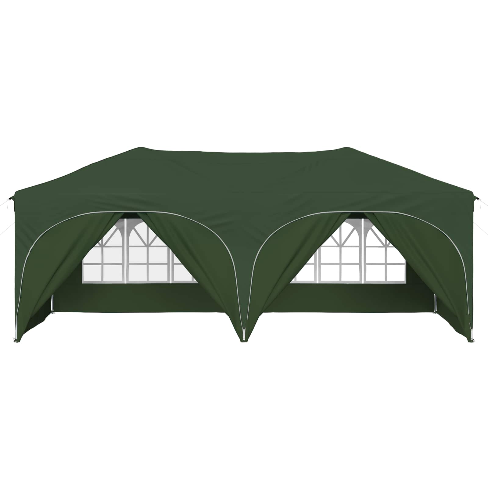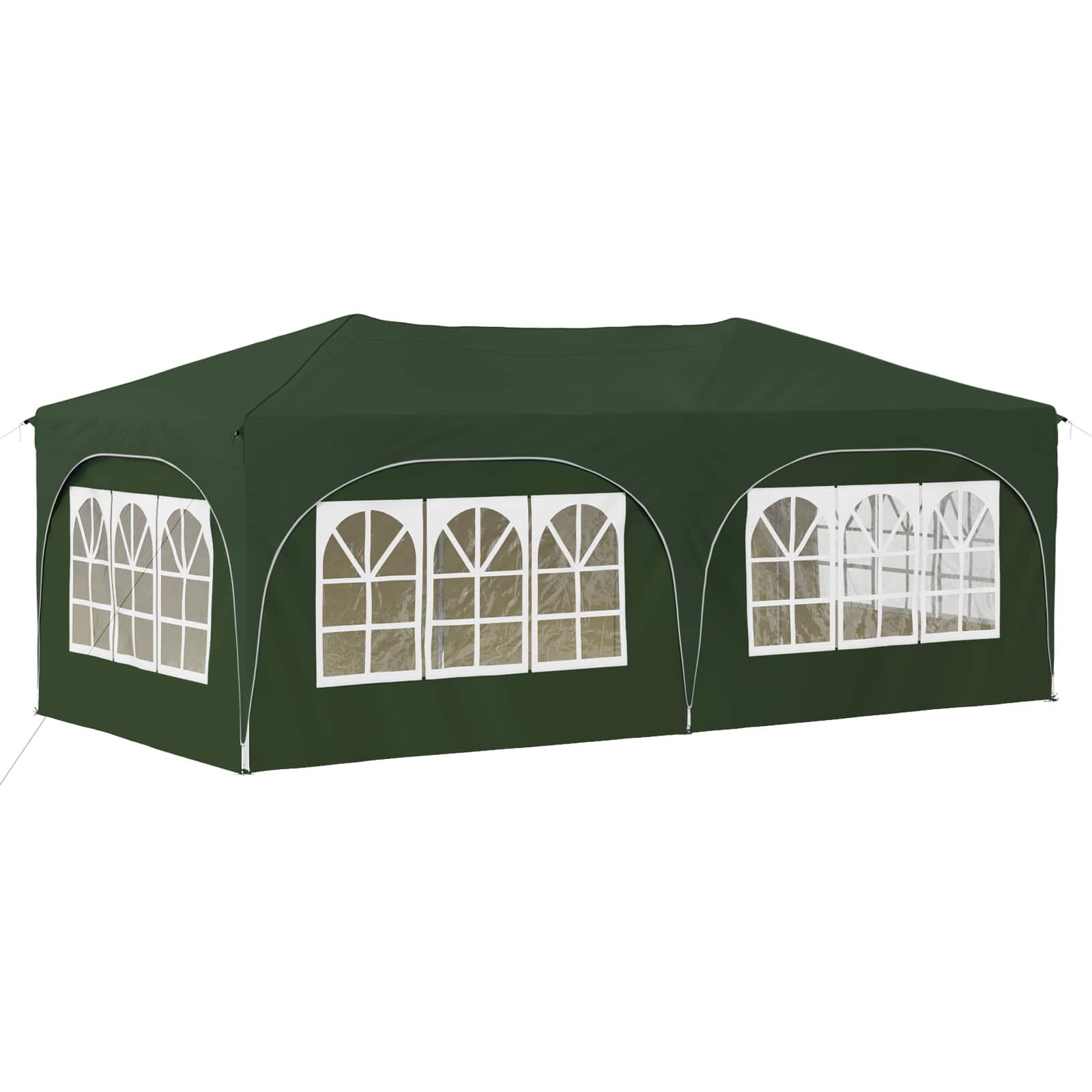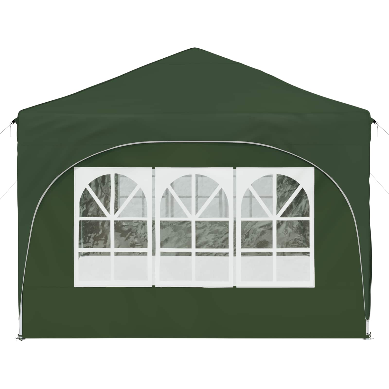 Ta večnamenski šotor za zabave bo vaše zunanje dogodke spremenil v nepozabne izkušnje. Z vrhunskim Oxford tkanjem daje sodoben pridih, s čistimi linijami in funkcionalnostjo. Ne glede na to, ali organizirate vrtnarsko zabavo, poroko ali kakšen večji zunanji dogodek, ta šotor nudi zaščito in prijetno vzdušje. Z veliko pokritostjo in elegantnim dizajnom kombinira stil in funkcionalnost ter izboljšuje vsak dogodek s svojo prisotnostjo. Trajna Oxford tkanina: Glavni material šotora, Oxford tkanina, zagotavlja odlično odpornost proti vremenskim vplivom. Odlikujejo jo vodoodporne lastnosti in UV zaščita, kar omogoča, da vaš prostor pod šotorom ostane udoben in zaščiten pred soncem in rahlim dežjem. Prilagoditev višine: Šotor je mogoče prilagoditi na tri različne višine, kar omogoča fleksibilno zaščito za različne tipe dogodkov. Ne glede na to, ali je to intimno srečanje ali velika prireditev, prilagoditev višine doda uporabnost in optimalno pokritost. Obsežna oprema: Vsebuje 4 vrvice proti vetru in 8 zemeljskih žebljev, kar zagotavlja stabilnost in odpornost na veter. Enostavna postavitev je zasnovana za dva, kar poenostavi proces in je priročna. Hitra postavitev: Ta šotor je opremljen z mehanizmom za hitro postavitev, kar odpravlja dolge postopke postavitve. To je super za gostitelje, ki želijo prihraniti čas in energijo ter hitro pripraviti prostor za goste. Navodila za oskrbo: Da ohranite šotor v dobrem stanju, se izogibajte grobim kemikalijam. S pravilno oskrbo bo material in struktura dolgo vzdržala, kar omogoča dolgotrajno uživanje pri različnih dogodkih. Pri največjem raztezanju ogrodja ne prekrivajte blaga. V nasprotnem primeru se bo blago pretrgalo. Za stabilizacijo vsake noge je veliko bolje uporabiti votlo opeko. Izdelek ni primeren za vremenske razmere, kot so močan veter, sneženje in ekstremne vremenske razmere. Nekateri deli lahko vsebujejo ostre robove, zato po potrebi nosite zaščitne rokavice. Pred sestavljanjem preverite, ali imate vse dele. Otroke in živali naj bodo stran od območja montaže. Pred začetkom se prepričajte, da imate dovolj prostora za razporeditev delov. Ne sestavljajte ali razstavljajte med močnim vetrom. Vse vire ognja in toplote hranite stran od šotora.