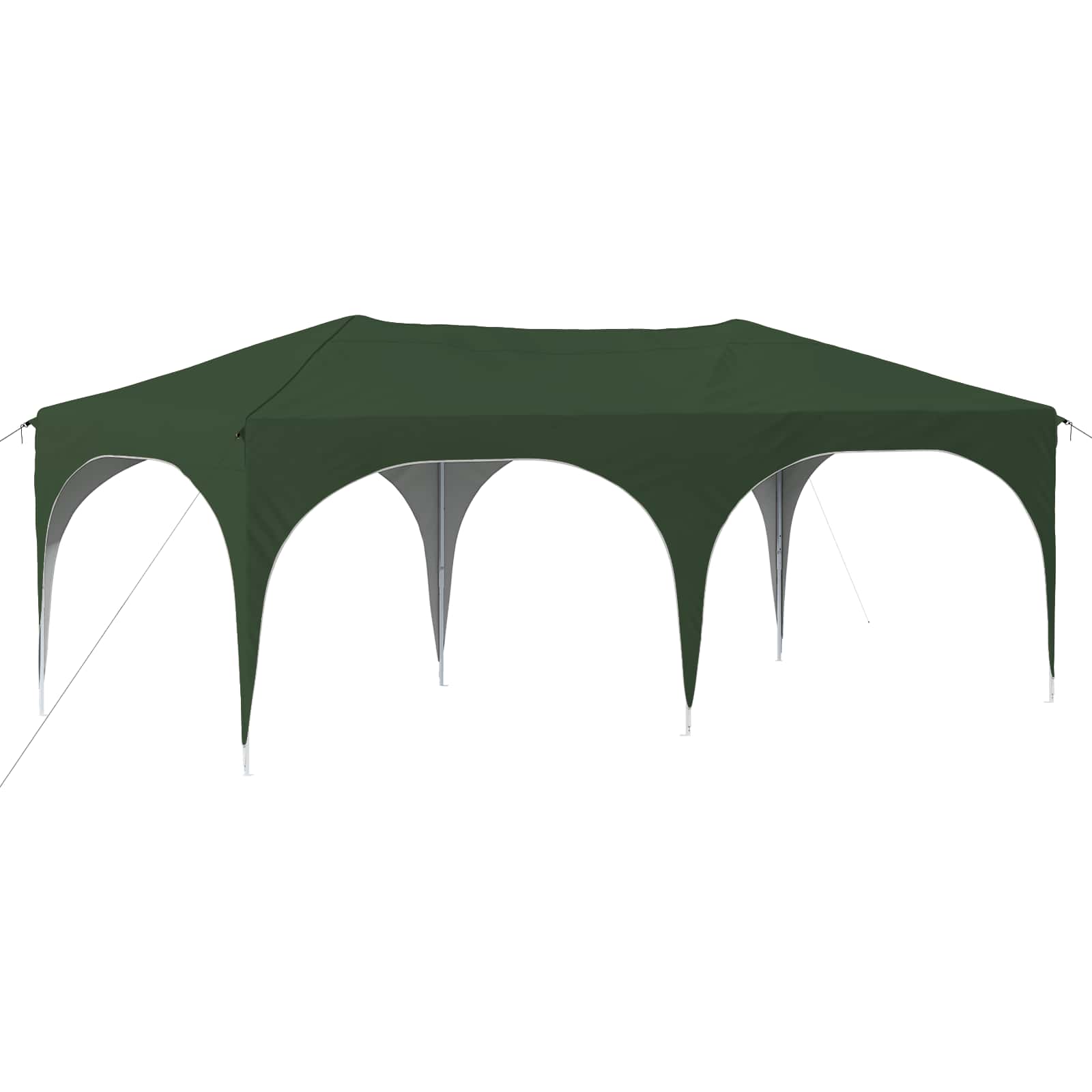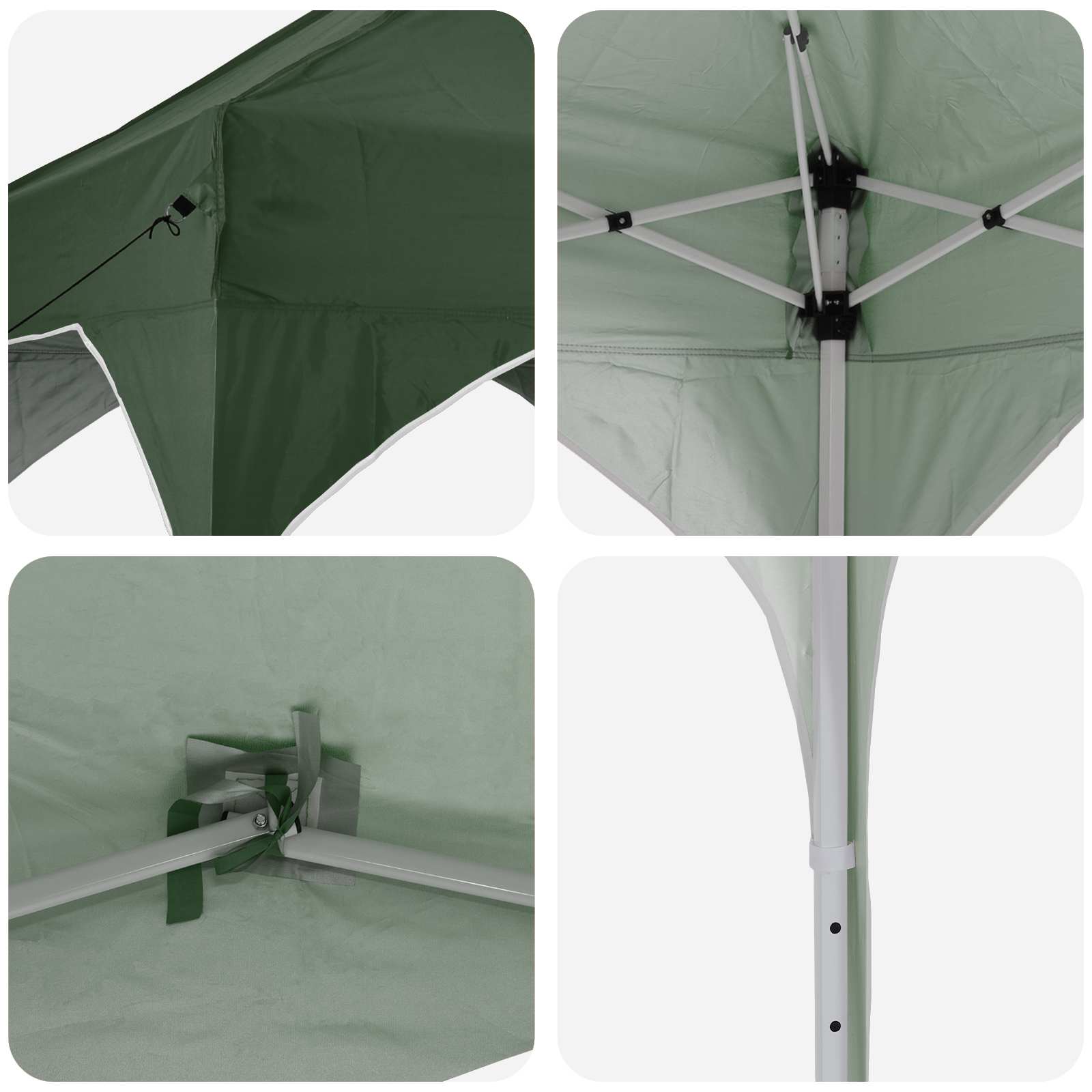 Ta večnamenski šotor za zabave bo vaše zunanje dogodke spremenil v nepozabne izkušnje. Z vrhunskim Oxford tkanjem daje sodoben pridih, s čistimi linijami in funkcionalnostjo. Ne glede na to, ali organizirate vrtnarsko zabavo, poroko ali kakšen večji zunanji dogodek, ta šotor nudi zaščito in prijetno vzdušje. Z veliko pokritostjo in elegantnim dizajnom kombinira stil in funkcionalnost ter izboljšuje vsak dogodek s svojo prisotnostjo. Trajna Oxford tkanina: Glavni material šotora, Oxford tkanina, zagotavlja odlično odpornost proti vremenskim vplivom. Odlikujejo jo vodoodporne lastnosti in UV zaščita, kar omogoča, da vaš prostor pod šotorom ostane udoben in zaščiten pred soncem in rahlim dežjem. Prilagoditev višine: Šotor je mogoče prilagoditi na tri različne višine, kar omogoča fleksibilno zaščito za različne tipe dogodkov. Ne glede na to, ali je to intimno srečanje ali velika prireditev, prilagoditev višine doda uporabnost in optimalno pokritost. Obsežna oprema: Vsebuje 4 vrvice proti vetru in 8 zemeljskih žebljev, kar zagotavlja stabilnost in odpornost na veter. Enostavna postavitev je zasnovana za dva, kar poenostavi proces in je priročna. Hitra postavitev: Ta šotor je opremljen z mehanizmom za hitro postavitev, kar odpravlja dolge postopke postavitve. To je super za gostitelje, ki želijo prihraniti čas in energijo ter hitro pripraviti prostor za goste. Navodila za oskrbo: Da ohranite šotor v dobrem stanju, se izogibajte grobim kemikalijam. S pravilno oskrbo bo material in struktura dolgo vzdržala, kar omogoča dolgotrajno uživanje pri različnih dogodkih. Pri največjem raztezanju ogrodja ne prekrivajte blaga. V nasprotnem primeru se bo blago pretrgalo. Za stabilizacijo vsake noge je veliko bolje uporabiti votlo opeko. Izdelek ni primeren za vremenske razmere, kot so močan veter, sneženje in ekstremne vremenske razmere. Nekateri deli lahko vsebujejo ostre robove, zato po potrebi nosite zaščitne rokavice. Pred sestavljanjem preverite, ali imate vse dele. Otroke in živali naj bodo stran od območja montaže. Pred začetkom se prepričajte, da imate dovolj prostora za razporeditev delov. Ne sestavljajte ali razstavljajte med močnim vetrom. Vse vire ognja in toplote hranite stran od šotora.