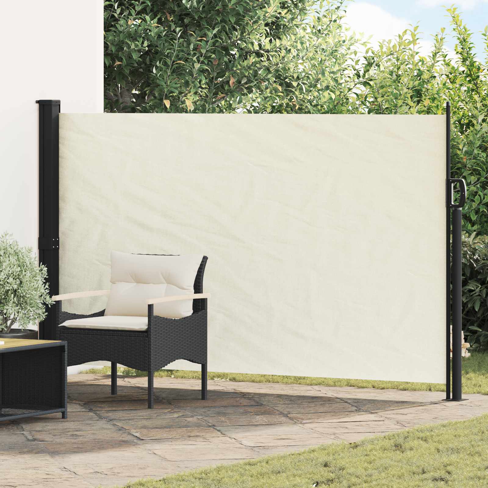 Ta stranska tenda je pametna in praktična rešitev za večjo zasebnost na prostem, ki osveži vaš balkon, teraso ali vrt. Njen sodoben dizajn s čistimi linijami se super poda v vsak zunanji prostor in je resnično vsestranski, istočasno pa nudi zasebnost, senco in zaščito pred vetrom. Zaradi retractable funkcije jo enostavno prilagodite in kontrolirate senco, kar je super za vroče poletne dni, ko je fleksibilnost ključna. Premium poliester: Ta senčnik je izdelan iz 100% poliestra z PU premazom, ki nudi odlično zračnost in hkrati odpornost na veter, sonce in vodo. Material nudi vrhunsko zaščito pred škodljivimi UV žarki, kar zagotavlja trajnostno dopolnitev vaše zunanje dekoracije. Zanesljiv jeklen okvir: Podprt z močnim jeklenim okvirjem, senčnik zagotavlja stabilnost in varnost. Trdna struktura prenese različne vremenske razmere, kar vam daje mir, hkrati pa izboljšuje uporabniško izkušnjo na prostem. Prijazen mehanizem za zlaganje: Senčnik ima intuitiven zložljiv dizajn, ki se samodejno odvije, ko se ročaj odstrani iz nosilca za enostavno uporabo, vendar nivoji sence se ne morejo prilagajati za dosledno zaščito pred soncem čez dan. Vsestranska uporaba: S svojo prilagodljivo funkcionalnostjo se ta senčnik lahko uporablja na prostem za povečanje zasebnosti v prostorih, kot so dvorišče, terasa, vrt ali balkon. Prav tako služi znotraj za prostore, kot so pisarne ali studii, da ustvarite dodatne stene ali pregrade po potrebi. Enostavna namestitev: Senčnik je priložen vsem potrebnim montažnim dostopom za enostavno nastavitev. Njegov dizajn omogoča varno pritrditev na stene in tla, kar poudarja enostavno montažo in brez težav se vključuje v vašo zunanjo okolje. Pozor: nevarnost poškodb! Pri popravilu, spreminjaju, razstavljanju in odstranjevanju senčilnega sistema je treba dele, ki so pod napetostjo (npr. zložljive ročice, protinapetostni sistemi), popolnoma sprostiti ali predhodno zavarovati. Za to je treba naročiti strokovnjaka! • Tende ne uporabljajte, če je poškodovana in potrebuje popravilo ali nastavitev. Stransko markizo je treba umakniti, če hitrost vetra presega 28 km/h. Stransko markizo je treba umakniti v primeru slabih vremenskih razmer, kot sta močan dež ali sneg. Uporaba v zmrzali lahko poškoduje izdelek. Pozor: nevarnost požara! V bližini tende ne uporabljajte žarov, grelnikov, opreme za kuhanje ali sveč. Med namestitvijo bodite previdni, saj obstaja nevarnost zmečkanin in strganja. Med namestitvijo bodite previdni s prsti. Da preprečite nevarnost zadušitve, hranite to plastično torbo stran od dojenčkov in otrok. Te torbe ne uporabljajte v zibelkah, posteljah, vozičkih ali stajicah. Ta torba ni igrača. Nevarnost! Nevarnost zadušitve, majhne delce hranite izven dosega otrok!