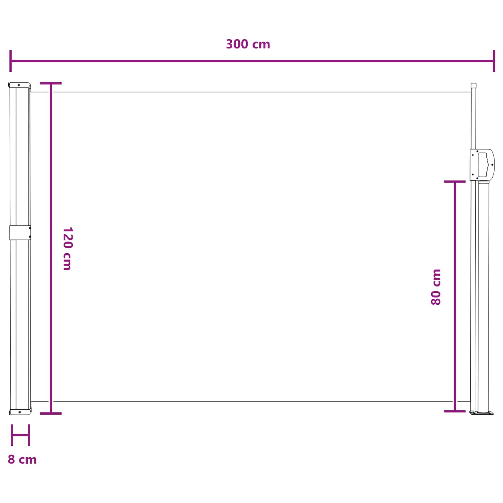 Ta stranska tenda je pametna in praktična rešitev za večjo zasebnost na prostem, ki osveži vaš balkon, teraso ali vrt. Njen sodoben dizajn s čistimi linijami se super poda v vsak zunanji prostor in je resnično vsestranski, istočasno pa nudi zasebnost, senco in zaščito pred vetrom. Zaradi retractable funkcije jo enostavno prilagodite in kontrolirate senco, kar je super za vroče poletne dni, ko je fleksibilnost ključna. Premium poliester: Ta senčnik je izdelan iz 100% poliestra z PU premazom, ki nudi odlično zračnost in hkrati odpornost na veter, sonce in vodo. Material nudi vrhunsko zaščito pred škodljivimi UV žarki, kar zagotavlja trajnostno dopolnitev vaše zunanje dekoracije. Zanesljiv jeklen okvir: Podprt z močnim jeklenim okvirjem, senčnik zagotavlja stabilnost in varnost. Trdna struktura prenese različne vremenske razmere, kar vam daje mir, hkrati pa izboljšuje uporabniško izkušnjo na prostem. Prijazen mehanizem za zlaganje: Senčnik ima intuitiven zložljiv dizajn, ki se samodejno odvije, ko se ročaj odstrani iz nosilca za enostavno uporabo, vendar nivoji sence se ne morejo prilagajati za dosledno zaščito pred soncem čez dan. Vsestranska uporaba: S svojo prilagodljivo funkcionalnostjo se ta senčnik lahko uporablja na prostem za povečanje zasebnosti v prostorih, kot so dvorišče, terasa, vrt ali balkon. Prav tako služi znotraj za prostore, kot so pisarne ali studii, da ustvarite dodatne stene ali pregrade po potrebi. Enostavna namestitev: Senčnik je priložen vsem potrebnim montažnim dostopom za enostavno nastavitev. Njegov dizajn omogoča varno pritrditev na stene in tla, kar poudarja enostavno montažo in brez težav se vključuje v vašo zunanjo okolje. Pozor: nevarnost poškodb! Pri popravilu, spreminjaju, razstavljanju in odstranjevanju senčilnega sistema je treba dele, ki so pod napetostjo (npr. zložljive ročice, protinapetostni sistemi), popolnoma sprostiti ali predhodno zavarovati. Za to je treba naročiti strokovnjaka! • Tende ne uporabljajte, če je poškodovana in potrebuje popravilo ali nastavitev. Stransko markizo je treba umakniti, če hitrost vetra presega 28 km/h. Stransko markizo je treba umakniti v primeru slabih vremenskih razmer, kot sta močan dež ali sneg. Uporaba v zmrzali lahko poškoduje izdelek. Pozor: nevarnost požara! V bližini tende ne uporabljajte žarov, grelnikov, opreme za kuhanje ali sveč. Med namestitvijo bodite previdni, saj obstaja nevarnost zmečkanin in strganja. Med namestitvijo bodite previdni s prsti. Da preprečite nevarnost zadušitve, hranite to plastično torbo stran od dojenčkov in otrok. Te torbe ne uporabljajte v zibelkah, posteljah, vozičkih ali stajicah. Ta torba ni igrača. Nevarnost! Nevarnost zadušitve, majhne delce hranite izven dosega otrok!