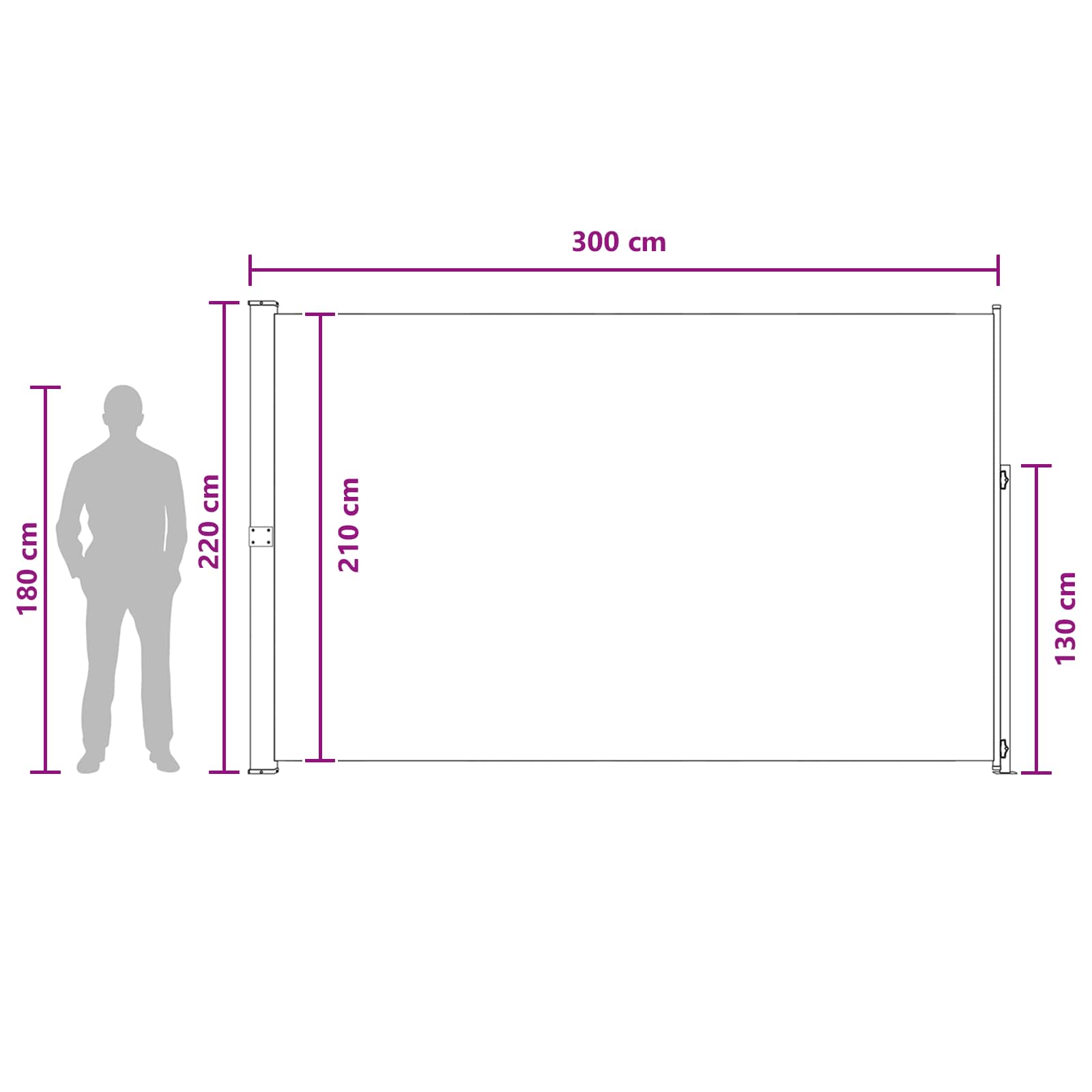 To trpežno retraktilno stransko senčilo nudi kar najboljšo zasebnost in senco za vaš zunanji prostor. Zasnovano je za funkcionalnost in stil, kar vam omogoča, da zaščitite svoj teraso, patio ali vrt pred močno sončno svetlobo in radovednimi pogledi. Njegova moderna oblika se enostavno ujema z različnimi stilskimi elementi na prostem. Poliester : Z 100% poliestrskim materialom in poliuretanskim premazom, je to retraktilno senčilo zasnovano, da prenese močne UV žarke in slabo vreme, kar zagotavlja dolgo življenjsko dobo. Popolna montažna oprema : Ta izdelek ima vse potrebno, da hitro in enostavno postavite senčilo na svoje mesto, kar omogoča varno in hitro namestitev. Retraktilna mehanika : Senčilo se samodejno zvije, zato ga lahko prilagodite po svojih potrebah, brez težav. Vsestrana uporaba : Super za terase, vrtove, verande ali karkoli drugega, kar potrebuje dodatno senco ali zasebnost. Kakšno zabavo načrtujete na prostem? To senčilo vam bo olajšalo udobje. Minimalno vzdrževanje : Pralno je tako enostavno kot postopek čiščenja z milom in vodo, kar vam pomaga ohranjati videz skozi čas. Pozor: nevarnost poškodb! Pri popravilu, spreminjaju, razstavljanju in odstranjevanju senčilnega sistema je treba dele, ki so pod napetostjo (npr. zložljive ročice, protinapetostni sistemi), popolnoma sprostiti ali predhodno zavarovati. Za to je treba naročiti strokovnjaka! • Tende ne uporabljajte, če je poškodovana in potrebuje popravilo ali nastavitev. Stransko markizo je treba umakniti, če hitrost vetra presega 28 km/h. Stransko markizo je treba umakniti v primeru slabih vremenskih razmer, kot sta močan dež ali sneg. Uporaba v zmrzali lahko poškoduje izdelek. Pozor: nevarnost požara! V bližini tende ne uporabljajte žarov, grelnikov, opreme za kuhanje ali sveč. Med namestitvijo bodite previdni, saj obstaja nevarnost zmečkanin in strganja. Med namestitvijo bodite previdni s prsti. Da preprečite nevarnost zadušitve, hranite to plastično torbo stran od dojenčkov in otrok. Te torbe ne uporabljajte v zibelkah, posteljah, vozičkih ali stajicah. Ta torba ni igrača. Nevarnost! Nevarnost zadušitve, majhne delce hranite izven dosega otrok!