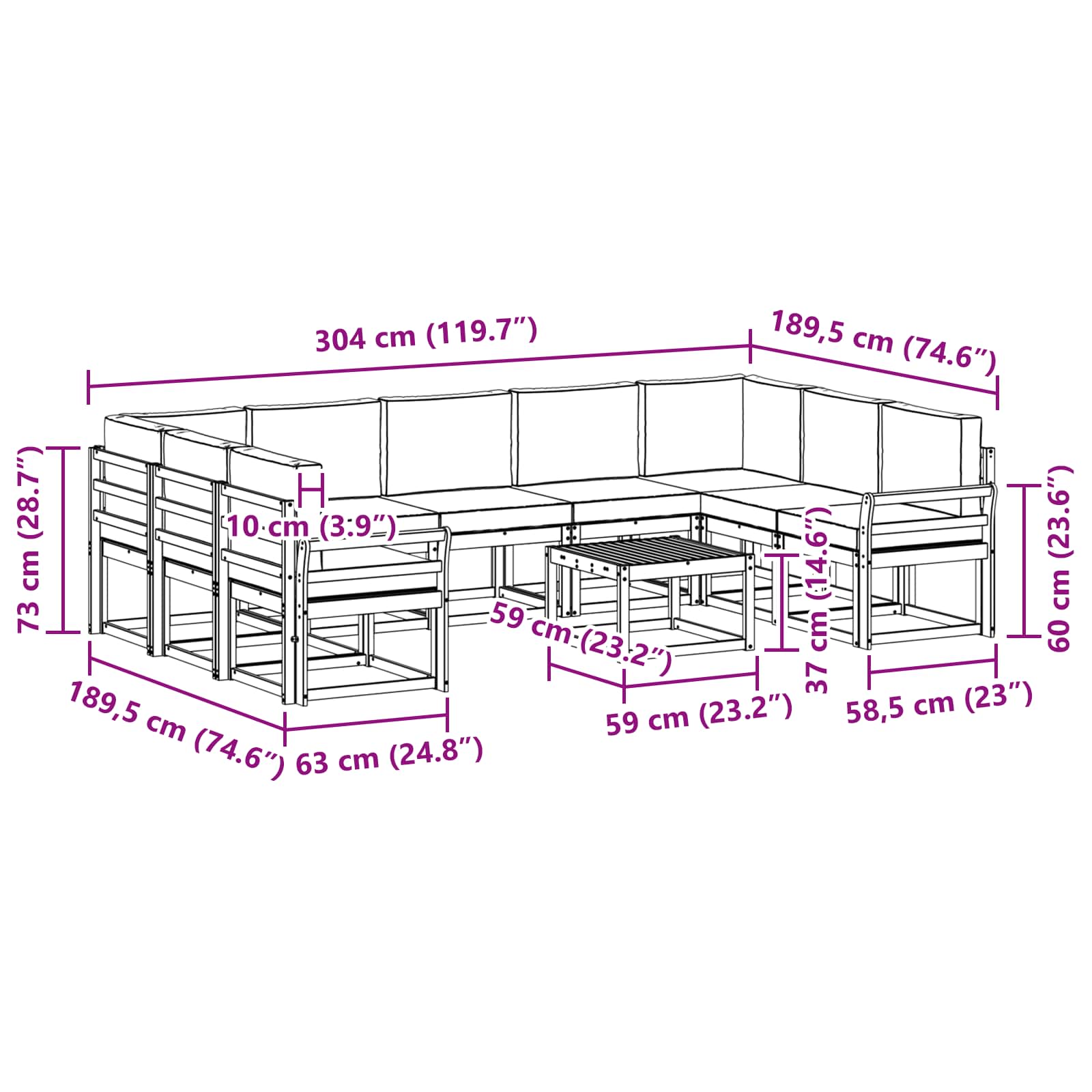 - Splošne dimenzije: 59 x 59 x 37 cm (D x Š x V)