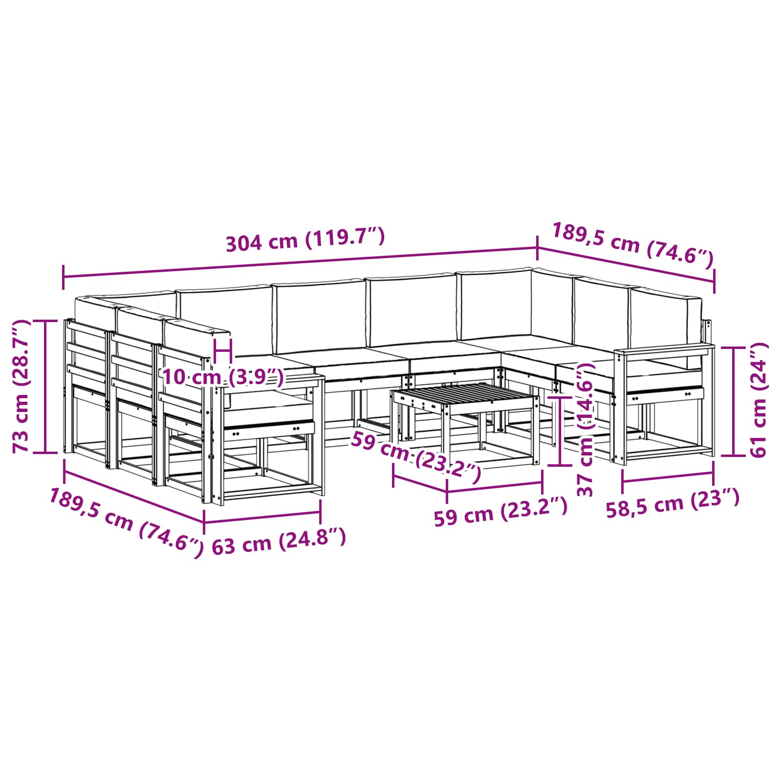 - Splošne dimenzije: 59 x 59 x 37 cm (D x Š x V)