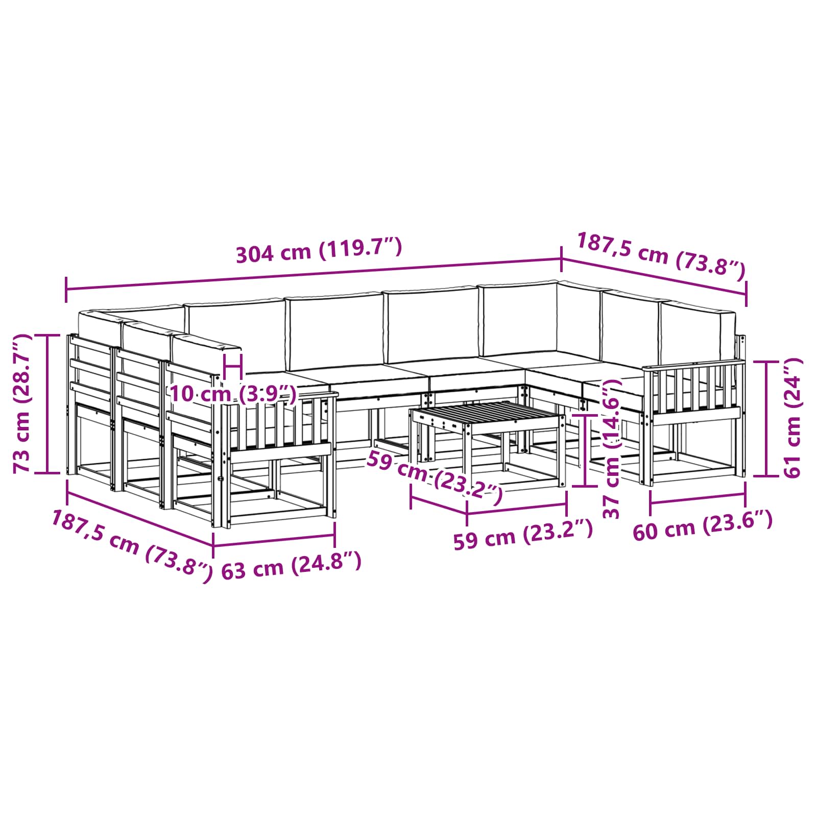 Ta zunanji sekcijski kavč je zasnovan, da združi udobje in moderen videz, kar ga dela idealno izbiro za vaš vrt, teraso ali prostor ob bazenu. Izdelan iz trdnega akacijevega lesa, ima čiste linije in minimalističen slog. Odličen je za manjša srečanja ali večje dogodke, uporabniki pa ga lahko preuredijo po potrebi. Njegov topel rjav ton se lepo uskladi z naravno okolico in doda malo elegance vašim zunanjim prostorom. Trd akacijev les: Natančno izdelan iz trdega akacijevega lesa, ki je znan po svoji vzdržljivosti in lepoti. Ta material je naravno odporen proti vremenskim vplivom, kar zagotavlja dolgo življenjsko dobo garniture. Njegov bogat rjav odtenek dodatno obogati zunanje okolje. Modularna zasnova: Udobna modularna zasnova vam omogoča, da prilagajate sedežne postavitve, kot vam ustreza. Ne glede na to, ali sestavljate manjše ali večje komplete, moduli ponujajo fleksibilnost in prilagodljivost. Stabilen naslon iz letvic: Ta kavč uporabnikom nudi udobje in stabilnost z zasnovo naslonjala iz letvic. Klasičen videz ohranja strukturo in udobje skozi celoten čas uporabe, tudi ob različnih postavitvah. Enostavno vzdrževanje: Skrb za to zunanjo pohištvo ne zahteva veliko truda. Preprosto zaščitite zunanji kavč s pokrovom, kadar ga ne uporabljate, ter obrišite z vlažno krpo, če je potrebno, ter se izogibajte dolgotrajni izpostavljenosti soncu, da ohranite prvotni videz. Potrebna montaža: Montaža je zasnovana za enostavno sestavljanje s pomočjo dveh oseb in osnovnim orodjem, kot so izvijači. Postopek je enostaven in hiter, kar vašemu zunanjemu prostoru dodaja živahen videz.
