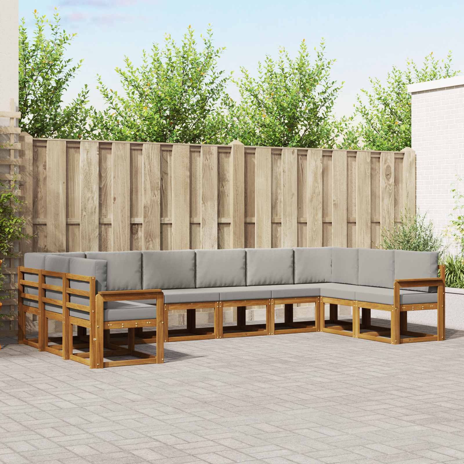 Ta komplet zunanje kotne sedežne garniture prinaša moderen pridih vašemu vrtu ali terasi s svojim sleek dizajnom, ki združuje preprostost in funkcionalnost. Narejen iz trdnega akacijevega lesa, je njegov stiliziran okvir dopolnjen z rešetkastimi detajli in toplimi rjavimi toni, ki se brezskrbno zlijejo z različnimi zunanjimi prostori. Ta set nudi prijeten kotiček za sprostitev ali druženje z gostimi. Trden akacijev les: Ta sedežna garnitura je narejena iz trdnega akacijevega lesa, ki je znan po svoji vzdržljivosti in odpornosti na vreme, kar zagotavlja dolgo življenjsko dobo. Vsak kos ima topel rjav ton, ki doda naravno lepoto in toplino vaši vrtni površini. Modularna zasnova: Modularna zasnova omogoča enostavno preurejanje glede na vaše želje, kar je super za prilagajanje številu gostov ali vrsti priložnosti. Postavite ga lahko kot en kos za maksimalno udobje ali kot manjši kotiček za intimna srečanja. Zasnova z letvami: Zasnovana z letvami iz trdnega akacijevega lesa, ta zasnova ne prinaša samo šik estetike, ampak tudi omogoča cirkulacijo zraka, kar ohranja uporabnike prijetno hladne v vročih dnevih. Funkcionalni naslon: Udobje in sproščenost bosta izboljšana s premišljenimi nasloni, ki nudijo ergonomsko podporo. Njihova trdna konstrukcija ponuja stabilno mesto za počitek in izboljša udobje za dolgotrajno uporabo. Nega in vzdrževanje: Ohranite videz vaše garniture z minimalnim trudom. Redno obrišite površine z vlažno krpo in uporabite zaščitne prevleke, ko garniture ne bo v uporabi, da preprečite poškodbe zaradi sončne svetlobe in slabega vremena.