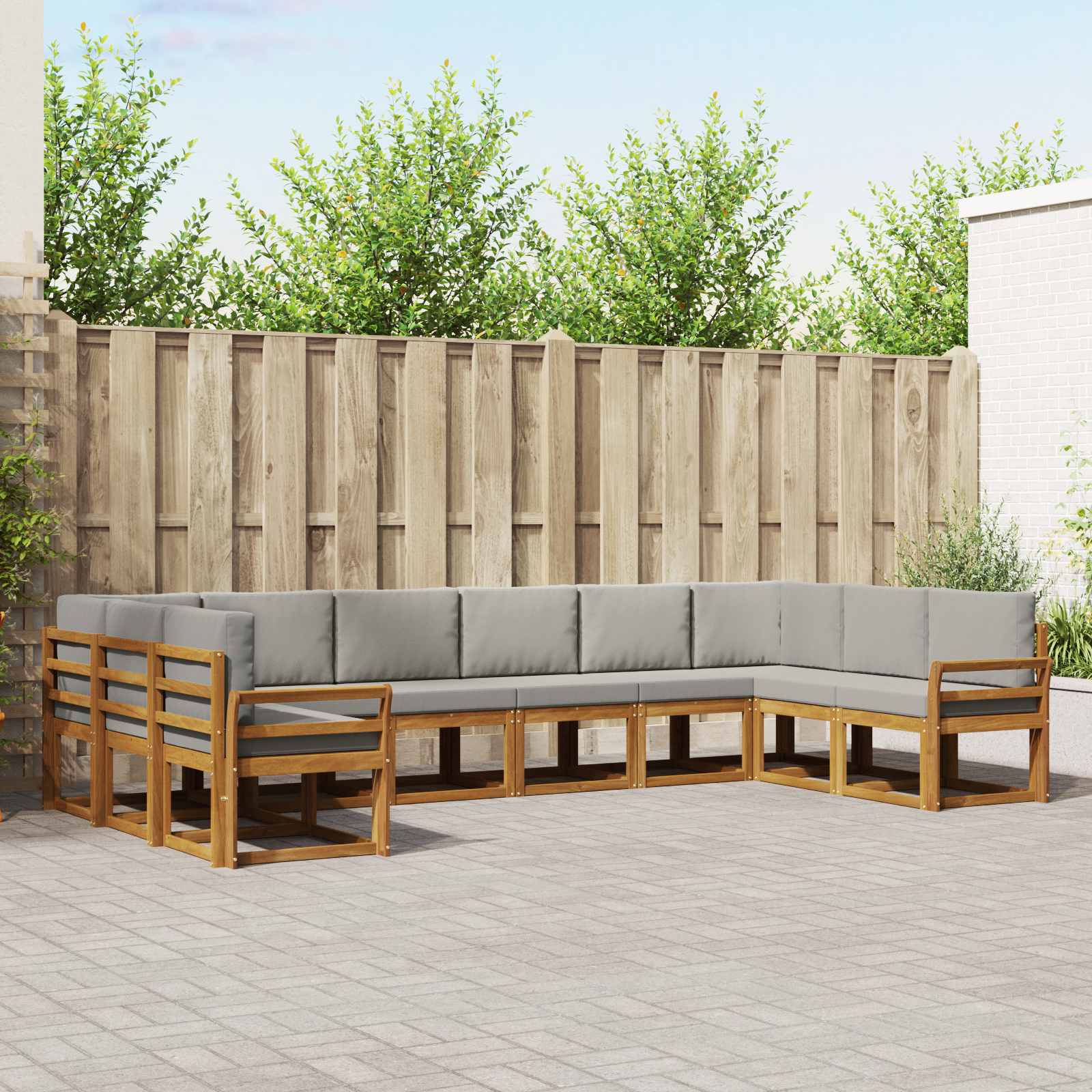 Ta komplet zunanje kotne sedežne garniture prinaša moderen pridih vašemu vrtu ali terasi s svojim sleek dizajnom, ki združuje preprostost in funkcionalnost. Narejen iz trdnega akacijevega lesa, je njegov stiliziran okvir dopolnjen z rešetkastimi detajli in toplimi rjavimi toni, ki se brezskrbno zlijejo z različnimi zunanjimi prostori. Ta set nudi prijeten kotiček za sprostitev ali druženje z gostimi. Trden akacijev les: Ta sedežna garnitura je narejena iz trdnega akacijevega lesa, ki je znan po svoji vzdržljivosti in odpornosti na vreme, kar zagotavlja dolgo življenjsko dobo. Vsak kos ima topel rjav ton, ki doda naravno lepoto in toplino vaši vrtni površini. Modularna zasnova: Modularna zasnova omogoča enostavno preurejanje glede na vaše želje, kar je super za prilagajanje številu gostov ali vrsti priložnosti. Postavite ga lahko kot en kos za maksimalno udobje ali kot manjši kotiček za intimna srečanja. Zasnova z letvami: Zasnovana z letvami iz trdnega akacijevega lesa, ta zasnova ne prinaša samo šik estetike, ampak tudi omogoča cirkulacijo zraka, kar ohranja uporabnike prijetno hladne v vročih dnevih. Funkcionalni naslon: Udobje in sproščenost bosta izboljšana s premišljenimi nasloni, ki nudijo ergonomsko podporo. Njihova trdna konstrukcija ponuja stabilno mesto za počitek in izboljša udobje za dolgotrajno uporabo. Nega in vzdrževanje: Ohranite videz vaše garniture z minimalnim trudom. Redno obrišite površine z vlažno krpo in uporabite zaščitne prevleke, ko garniture ne bo v uporabi, da preprečite poškodbe zaradi sončne svetlobe in slabega vremena.