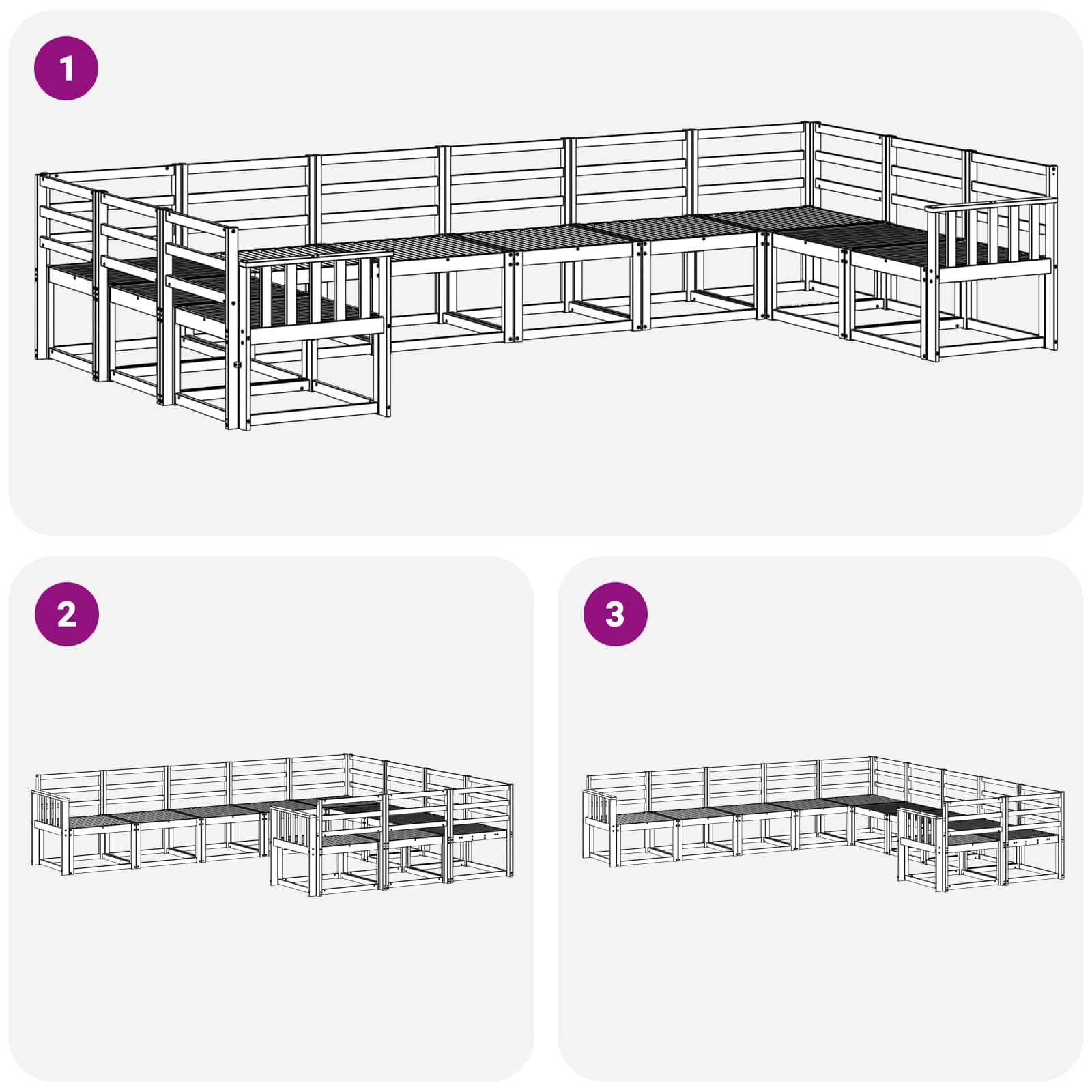 Ta komplet zunanje kotne sedežne garniture prinaša moderen pridih vašemu vrtu ali terasi s svojim sleek dizajnom, ki združuje preprostost in funkcionalnost. Narejen iz trdnega akacijevega lesa, je njegov stiliziran okvir dopolnjen z rešetkastimi detajli in toplimi rjavimi toni, ki se brezskrbno zlijejo z različnimi zunanjimi prostori. Ta set nudi prijeten kotiček za sprostitev ali druženje z gostimi. Trden akacijev les: Ta sedežna garnitura je narejena iz trdnega akacijevega lesa, ki je znan po svoji vzdržljivosti in odpornosti na vreme, kar zagotavlja dolgo življenjsko dobo. Vsak kos ima topel rjav ton, ki doda naravno lepoto in toplino vaši vrtni površini. Modularna zasnova: Modularna zasnova omogoča enostavno preurejanje glede na vaše želje, kar je super za prilagajanje številu gostov ali vrsti priložnosti. Postavite ga lahko kot en kos za maksimalno udobje ali kot manjši kotiček za intimna srečanja. Zasnova z letvami: Zasnovana z letvami iz trdnega akacijevega lesa, ta zasnova ne prinaša samo šik estetike, ampak tudi omogoča cirkulacijo zraka, kar ohranja uporabnike prijetno hladne v vročih dnevih. Funkcionalni naslon: Udobje in sproščenost bosta izboljšana s premišljenimi nasloni, ki nudijo ergonomsko podporo. Njihova trdna konstrukcija ponuja stabilno mesto za počitek in izboljša udobje za dolgotrajno uporabo. Nega in vzdrževanje: Ohranite videz vaše garniture z minimalnim trudom. Redno obrišite površine z vlažno krpo in uporabite zaščitne prevleke, ko garniture ne bo v uporabi, da preprečite poškodbe zaradi sončne svetlobe in slabega vremena.