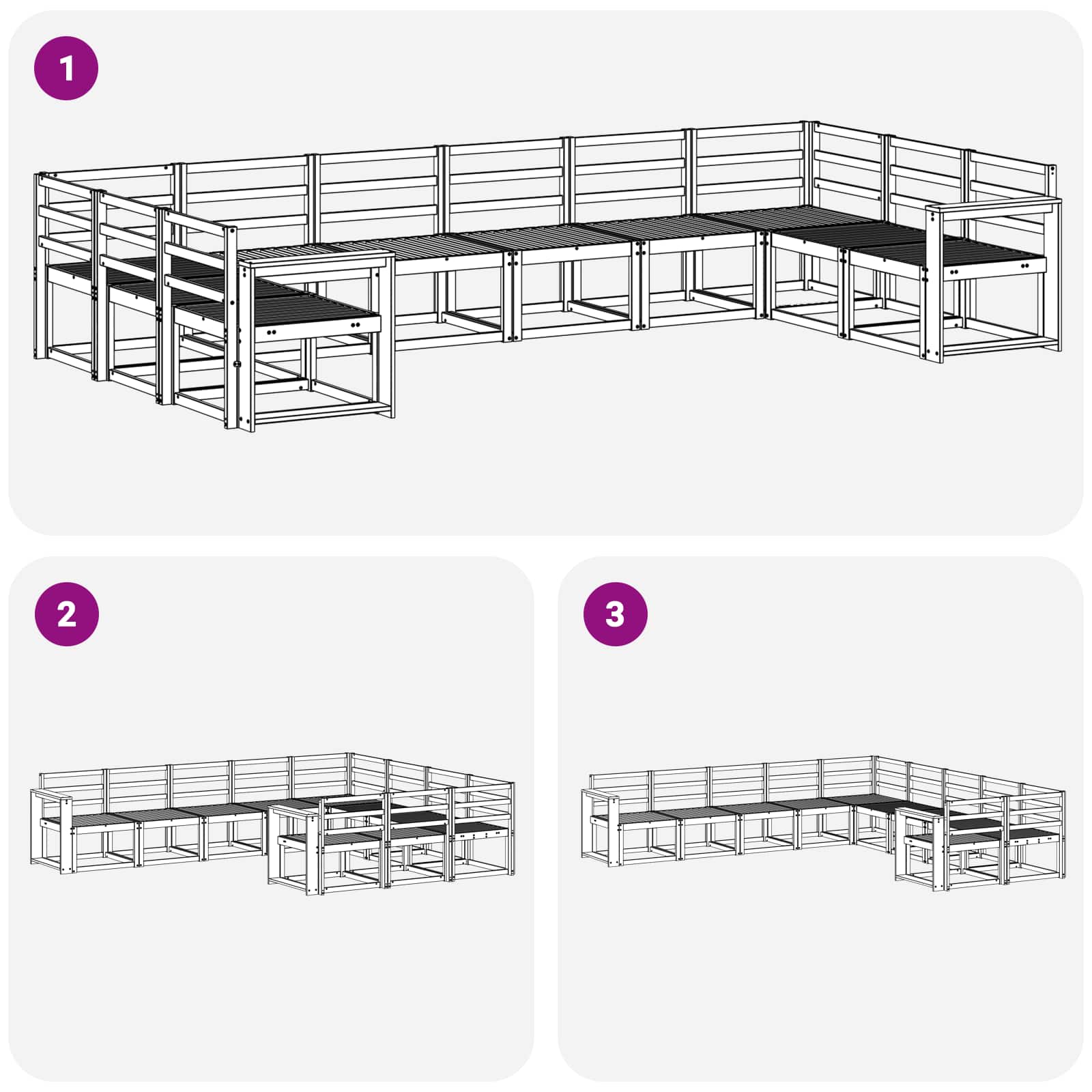 Ta komplet zunanje kotne sedežne garniture prinaša moderen pridih vašemu vrtu ali terasi s svojim sleek dizajnom, ki združuje preprostost in funkcionalnost. Narejen iz trdnega akacijevega lesa, je njegov stiliziran okvir dopolnjen z rešetkastimi detajli in toplimi rjavimi toni, ki se brezskrbno zlijejo z različnimi zunanjimi prostori. Ta set nudi prijeten kotiček za sprostitev ali druženje z gostimi. Trden akacijev les: Ta sedežna garnitura je narejena iz trdnega akacijevega lesa, ki je znan po svoji vzdržljivosti in odpornosti na vreme, kar zagotavlja dolgo življenjsko dobo. Vsak kos ima topel rjav ton, ki doda naravno lepoto in toplino vaši vrtni površini. Modularna zasnova: Modularna zasnova omogoča enostavno preurejanje glede na vaše želje, kar je super za prilagajanje številu gostov ali vrsti priložnosti. Postavite ga lahko kot en kos za maksimalno udobje ali kot manjši kotiček za intimna srečanja. Zasnova z letvami: Zasnovana z letvami iz trdnega akacijevega lesa, ta zasnova ne prinaša samo šik estetike, ampak tudi omogoča cirkulacijo zraka, kar ohranja uporabnike prijetno hladne v vročih dnevih. Funkcionalni naslon: Udobje in sproščenost bosta izboljšana s premišljenimi nasloni, ki nudijo ergonomsko podporo. Njihova trdna konstrukcija ponuja stabilno mesto za počitek in izboljša udobje za dolgotrajno uporabo. Nega in vzdrževanje: Ohranite videz vaše garniture z minimalnim trudom. Redno obrišite površine z vlažno krpo in uporabite zaščitne prevleke, ko garniture ne bo v uporabi, da preprečite poškodbe zaradi sončne svetlobe in slabega vremena.