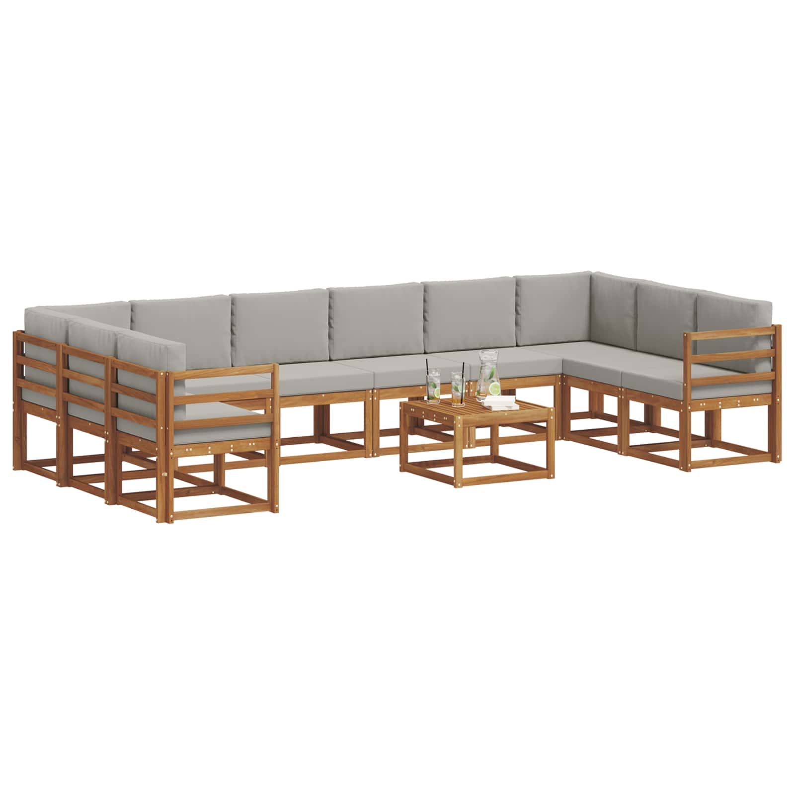 Ta zunanja sedežna garnitura se odlično prilega modernim prostorskim postavitvam. Zasnovana z mislijo na funkcionalnost in estetiko, je idealna izbira za vrtnarske, patio ali obrobne bazene. Izdelana iz trdnega akacijevega lesa, kar ji daje privlačen in minimalističen videz. Modularni sistem omogoča prilagoditev različnim potrebam po sedenju, njegova temno rjava barva pa lepo dopolnjuje zunanji prostor ter ustvarja prijetno vzdušje za druženje či sprostitev. Premium materiali: Zasnovana iz trdnega akacijevega lesa, ta sedežna garnitura zagotavlja dolgotrajno uporabnost in odpornost na vremenske razmere. Ta material ni le močan, ampak dodaja tudi rustikalni čar zunanjemu okolju. Celoten set: S številnimi moduli, ta komplet ponuja prilagodljive postavitve, ki ustrezajo različnim potrebam in dogodkom, kar omogoča multifunkcionalno uporabo. Sodobni stil: S čistimi linijami in brez odvečnega okrasja, ta garnitura predstavlja sofisticirano preprostost, primerno za minimalistične in elegantne zunanje prostore. Prilagodljivost: Modularna zasnova omogoča enostavno prilagajanje različnim priložnostim. Ne glede na to, ali imaš zunanje zabave ali uživaš v mirnem družinskem času, se ta set odlično vključuje. Praktično vzdrževanje: Zasnova za enostavno nego; vsak kos je narejen tako, da prenese elemente z minimalnimi napori. Občasno brisanje z vlažno krpo je dovolj, zaščitne prevleke pa dodatno podaljšajo življenjsko dobo med sezono.]