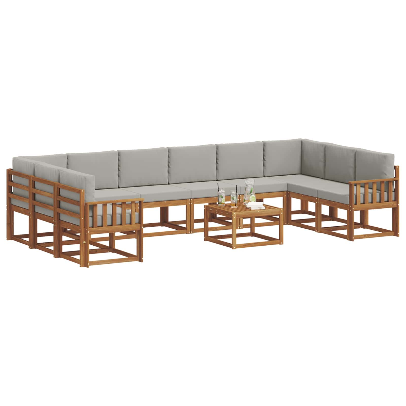 Ta zunanja sedežna garnitura se odlično prilega modernim prostorskim postavitvam. Zasnovana z mislijo na funkcionalnost in estetiko, je idealna izbira za vrtnarske, patio ali obrobne bazene. Izdelana iz trdnega akacijevega lesa, kar ji daje privlačen in minimalističen videz. Modularni sistem omogoča prilagoditev različnim potrebam po sedenju, njegova temno rjava barva pa lepo dopolnjuje zunanji prostor ter ustvarja prijetno vzdušje za druženje či sprostitev. Premium materiali: Zasnovana iz trdnega akacijevega lesa, ta sedežna garnitura zagotavlja dolgotrajno uporabnost in odpornost na vremenske razmere. Ta material ni le močan, ampak dodaja tudi rustikalni čar zunanjemu okolju. Celoten set: S številnimi moduli, ta komplet ponuja prilagodljive postavitve, ki ustrezajo različnim potrebam in dogodkom, kar omogoča multifunkcionalno uporabo. Sodobni stil: S čistimi linijami in brez odvečnega okrasja, ta garnitura predstavlja sofisticirano preprostost, primerno za minimalistične in elegantne zunanje prostore. Prilagodljivost: Modularna zasnova omogoča enostavno prilagajanje različnim priložnostim. Ne glede na to, ali imaš zunanje zabave ali uživaš v mirnem družinskem času, se ta set odlično vključuje. Praktično vzdrževanje: Zasnova za enostavno nego; vsak kos je narejen tako, da prenese elemente z minimalnimi napori. Občasno brisanje z vlažno krpo je dovolj, zaščitne prevleke pa dodatno podaljšajo življenjsko dobo med sezono.]