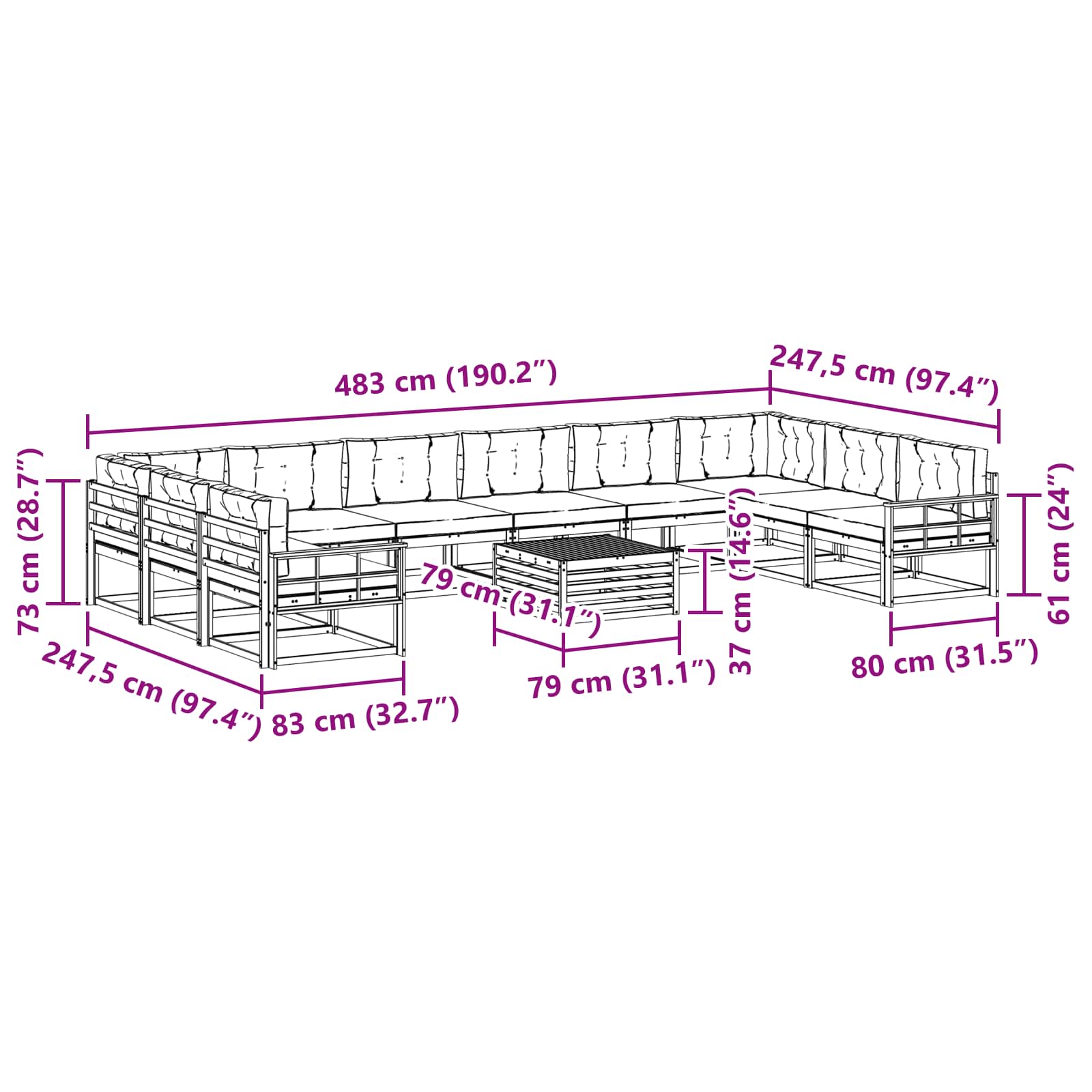 - 12 x Sedežna blazina: 80 x 43 x 10 cm (D x Š x V)