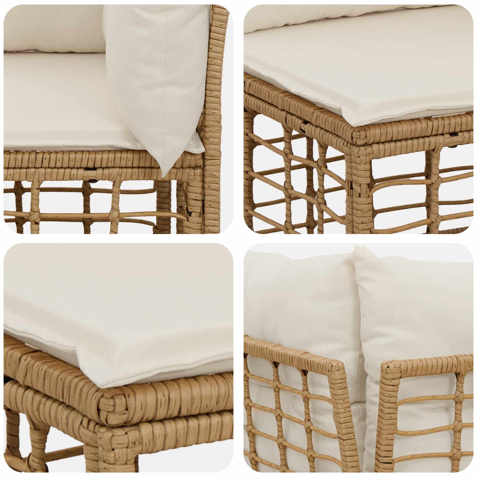 Zunanja sedežna garnitura je tvoja idealna izbira za stilno sedenje na vrtu ali terasi. Sestavljena iz modularnih komponent ti omogoča, da jo prilagodiš svojim potrebam in prostoru. Njena rustikalna zasnova bo obogatila tvoj zunanji prostor in ponudi praktčno rešitev za sprostitev. Gradnja iz poliratana: Ta sedežna garnitura je narejena iz vremensko odpornega poliratan materiala, kar jo naredi popolno za zunanjo uporabo. Prenaša sončne in dežne dni, kar zagotavlja dolgo življenjsko dobo. Prašno lakiran jekleni okvir doda stabilnost in trpežnost, kar pomaga pri njeni dolgotrajni uporabi na vrtu ali terasi. Udobne zunanje blazine: Vsak sedež vsebuje zunanje blazine s zapiranjem na preklop, kar povečuje udobje in stabilnost. Napolnjene so s kombinacijo pene in polipropilenskih vlaken za odlične podporne lastnosti, kar omogoča, da uživaš v daljših trenutkih sprostitve. Modularna postavitev: Ta sedežna garnitura omogoča enostavno prilagajanje za tvoje prostor in stil. Modularni dizajn omogoča svobodo pri postavljanju, bodisi za sproščeno lenarjenje ali uradne dogodke. Enostavno vzdrževanje: Poliratan je enostaven za čiščenje. Preprosto ga obriši z vlažno krpo za ohranjanje videza. Uporaba zaščitne prevleke, ko ni v uporabi, pomaga zaščititi pohištvo pred soncem in vremenskimi vplivi. Rustikalni stil: S svojo grobo lepoto ta sekcijski kos donese rustikalni čar v naravno okolje. Ne glede na to, ali si ob vrtu ali bazenu, se brez težav zlije s katerimkoli okoljem in ponudi prijetno vzdušje.