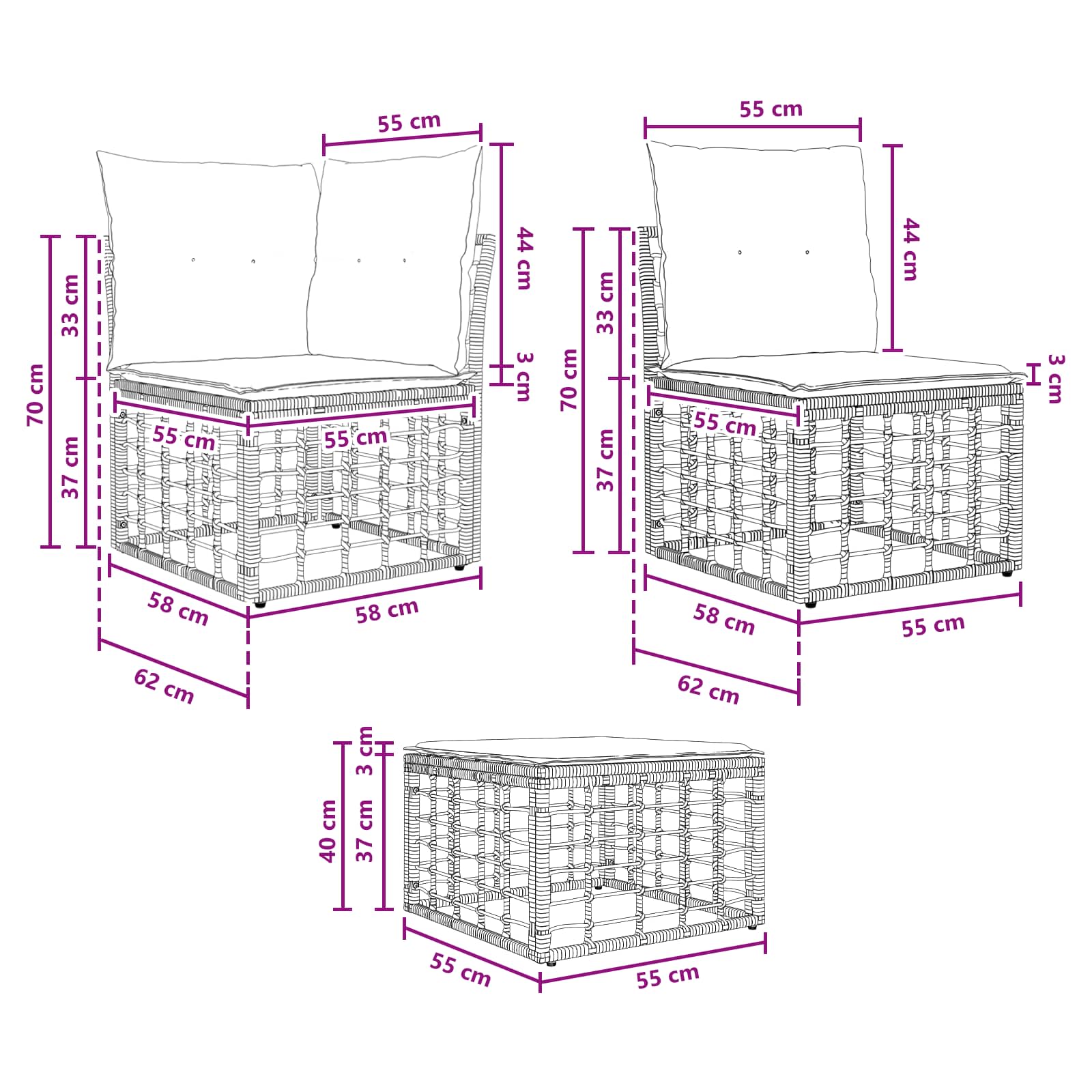 - 7 x srednji kavč: 55 x 62 x 70 cm (D x Š x V)