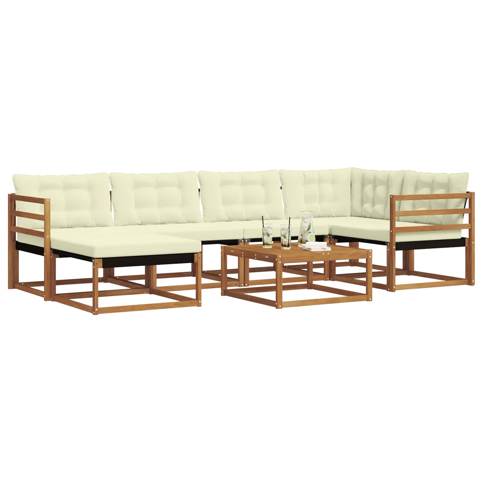 Ta soglasna sedežna garnitura lepo popestri vsak vrt ali teraso. Združuje udobje in stil ter je idealna za družinska srečanja. Trden akacijev les: Ta material dvigne videz seta in zagotavlja dolgo življenjsko dobo, ne glede na vreme. Naravni leseni toni se super zlijejo z zunanjim okoljem, kar ga naredi za brezčasno izbiro za vaš vrt ali teraso. Njegova odpornost proti obrabi ga naredi primerno za družabna srečanja in mirne trenutke. Integrirani elementi: Sofe imajo udobne naslone za roke in robusten okvir, oba narejena iz akacijevega lesa. Textilene hrbtne stene in debelo oblazinjene blazine nudijo dolgotrajno udobje. Snemljive sedežne blazine so z zadrgo, kar omogoča, da hitro in lahko očistite. Funkcionalne lastnosti: Zasnovan za uporabo na prostem, ta set je odporen na bledenje in enostaven za čiščenje, kar zagotavlja, da ostane videti nov. Naslon za hrbet podpori pravilno držo, medtem ko praktični nasloni za roke omogočajo udobno ležanje brez skrbi. Vsestrane uporabe: Ta sofa je odlična za različne zahteve, kot na primer zabave, piknike ali pa zgolj uživanje v mirnem večeru s knjigo. Njena zasnova se lepo dopolnjuje s sodobnimi prostori, kar jo naredi za odlično izbiro za digne ambient. Enostavno vzdrževanje: Da ohranite njen videz, jo enostavno obrišite z vlažno krpo. Ta preprosta rutina pomaga ohraniti vašo sedežno garnituro svežo skozi vse letne čase. Brez težav zaščitite svoj zunanji prostor in uživajte v dolgotrajnih druženjih.