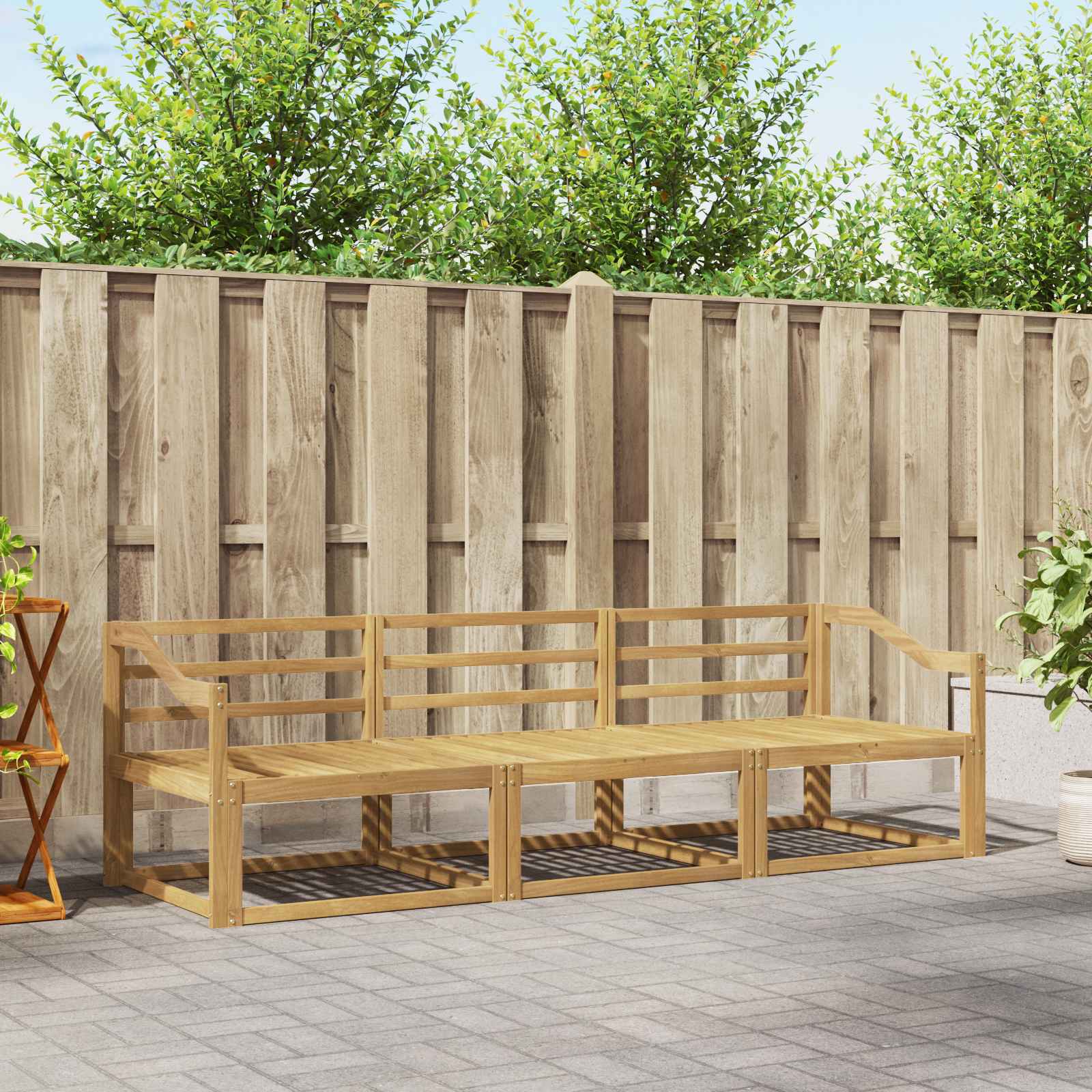 Ta moderni komplet zunanjih kotnih kavčev je vsestranska in stilska izbira za vsak vrt, teraso ali obrobje bazena. Izdelan iz trdnega akacijevega lesa v bogatem rjavem odtenku, ima prijeten in trpežen izgled. Modularna zasnova omogoča prilagoditev proti specifičnim prostorom, kar ustvari vabljivo okolje za sprostitev in druženje na prostem. Trden akacijev les: Ta komplet kavčev je narejen iz trdnega akacijevega lesa, znanega po svoji lepoti in odpornosti na vreme. Njegova bogata rjava barva se prilega vsaki zunanji okolici, kar zagotavlja estetsko in funkcionalno povezavo. Njegova naravna odpornost na vreme omogoča, da ostane v top formi tudi v različnih pogojih. Modularna konfiguracija: Zaradi modularne zasnove se lahko ta komplet kavčev enostavno preoblikuje, da ustreza vašim potrebam. Njegova prilagodljivost ponuja različne postavitve ter udobno sedenje za srečanja ali mirno sprostitev. Podporni letveni naslon: Vsak kos kavča ima letveni naslon, ki izboljša udobje in podpira pravilno držo. Ta zasnova omogoča dobro kroženje zraka, kar je še posebej prijetno v toplih dneh. Zasnova dodaja tudi malo sofisticiranosti zunanjemu prostoru. Vremensko odporne lastnosti: Komplet kavčev je zasnovan za zunanje pogoje in vključuje vremensko odporne značilnosti. Vse od zaščitnih naslonov do trdnih nog, vsak del je zasnovan za prenašanje spremenljivih vremenskih razmer, kar zagotavlja dolgo življenjsko dobo za vaše zunanje prostore. Praktično vzdrževanje: Ohranite videz tega kompleta tako, da ga pokrijete, ko ga ne uporabljate, in se izogibajte dolgotrajni izpostavljenosti soncu. Redno obrišite z vlažno krpo, da odstranite prah in zagotovite, da ostanejo v vrhunskem stanju, kar nudi dolgotrajno privlačnost in udobje vašega zunanjega prostora.