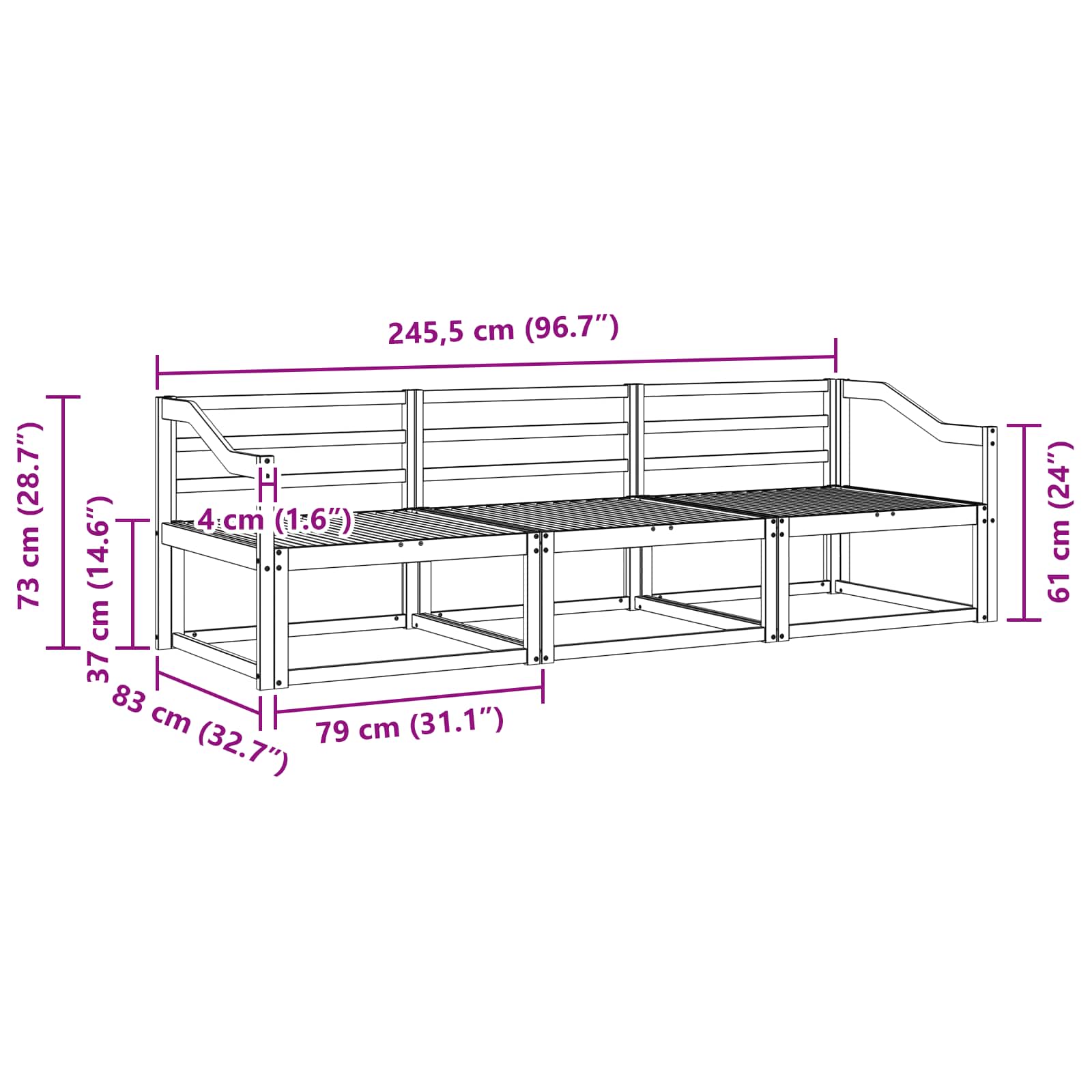 - Splošne dimenzije: 245,5 x 83 x 73 cm (D x Š x V)
