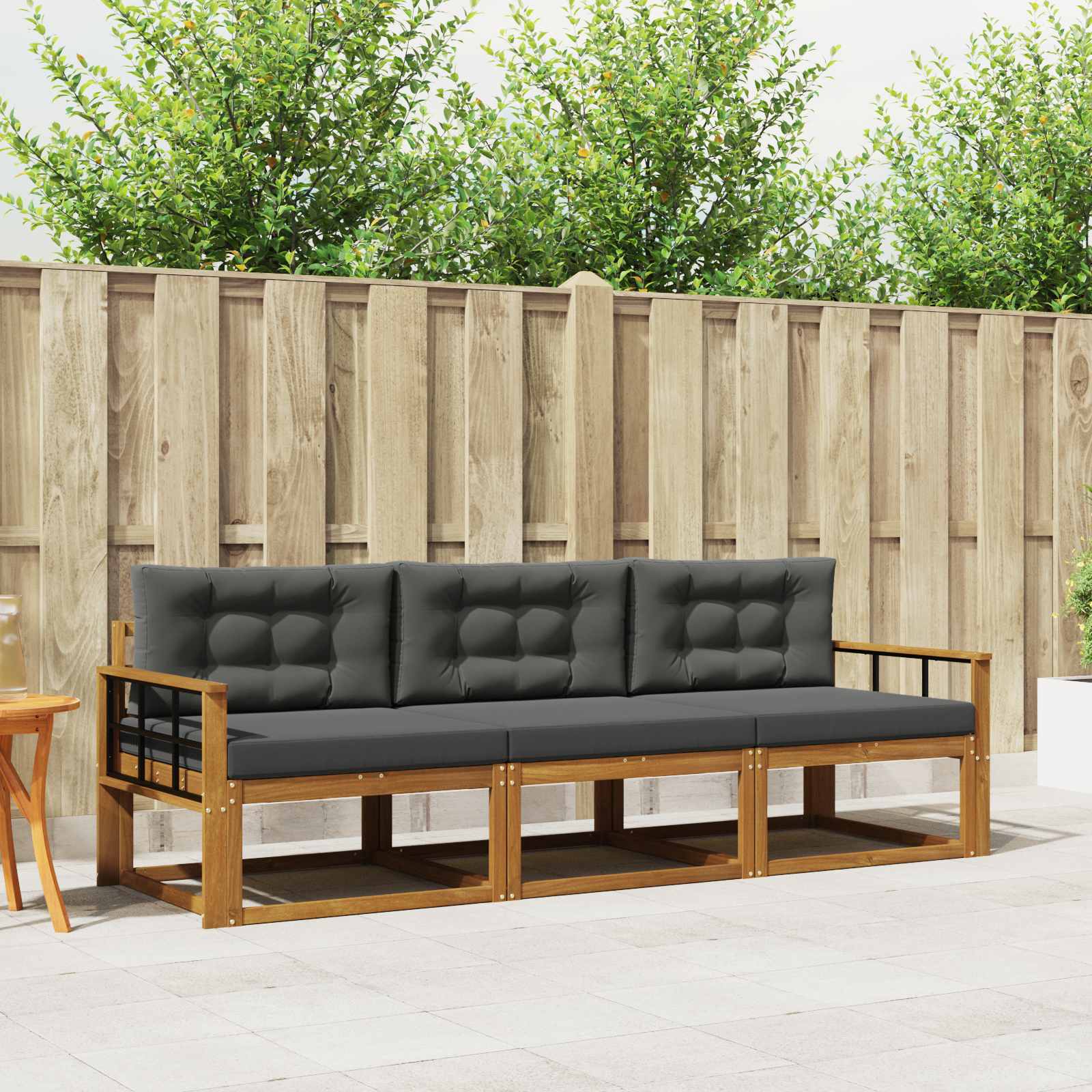 Ta moderni komplet zunanjih kotnih kavčev je vsestranska in stilska izbira za vsak vrt, teraso ali obrobje bazena. Izdelan iz trdnega akacijevega lesa v bogatem rjavem odtenku, ima prijeten in trpežen izgled. Modularna zasnova omogoča prilagoditev proti specifičnim prostorom, kar ustvari vabljivo okolje za sprostitev in druženje na prostem. Trden akacijev les: Ta komplet kavčev je narejen iz trdnega akacijevega lesa, znanega po svoji lepoti in odpornosti na vreme. Njegova bogata rjava barva se prilega vsaki zunanji okolici, kar zagotavlja estetsko in funkcionalno povezavo. Njegova naravna odpornost na vreme omogoča, da ostane v top formi tudi v različnih pogojih. Modularna konfiguracija: Zaradi modularne zasnove se lahko ta komplet kavčev enostavno preoblikuje, da ustreza vašim potrebam. Njegova prilagodljivost ponuja različne postavitve ter udobno sedenje za srečanja ali mirno sprostitev. Podporni letveni naslon: Vsak kos kavča ima letveni naslon, ki izboljša udobje in podpira pravilno držo. Ta zasnova omogoča dobro kroženje zraka, kar je še posebej prijetno v toplih dneh. Zasnova dodaja tudi malo sofisticiranosti zunanjemu prostoru. Vremensko odporne lastnosti: Komplet kavčev je zasnovan za zunanje pogoje in vključuje vremensko odporne značilnosti. Vse od zaščitnih naslonov do trdnih nog, vsak del je zasnovan za prenašanje spremenljivih vremenskih razmer, kar zagotavlja dolgo življenjsko dobo za vaše zunanje prostore. Praktično vzdrževanje: Ohranite videz tega kompleta tako, da ga pokrijete, ko ga ne uporabljate, in se izogibajte dolgotrajni izpostavljenosti soncu. Redno obrišite z vlažno krpo, da odstranite prah in zagotovite, da ostanejo v vrhunskem stanju, kar nudi dolgotrajno privlačnost in udobje vašega zunanjega prostora.