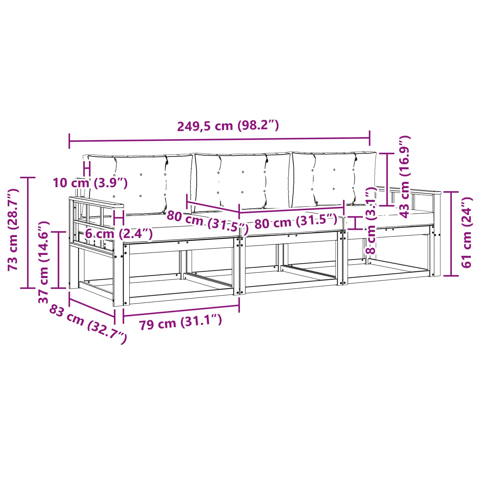 - 3 x hrbtna blazina: 80 x 43 x 10 cm (D x Š x V)