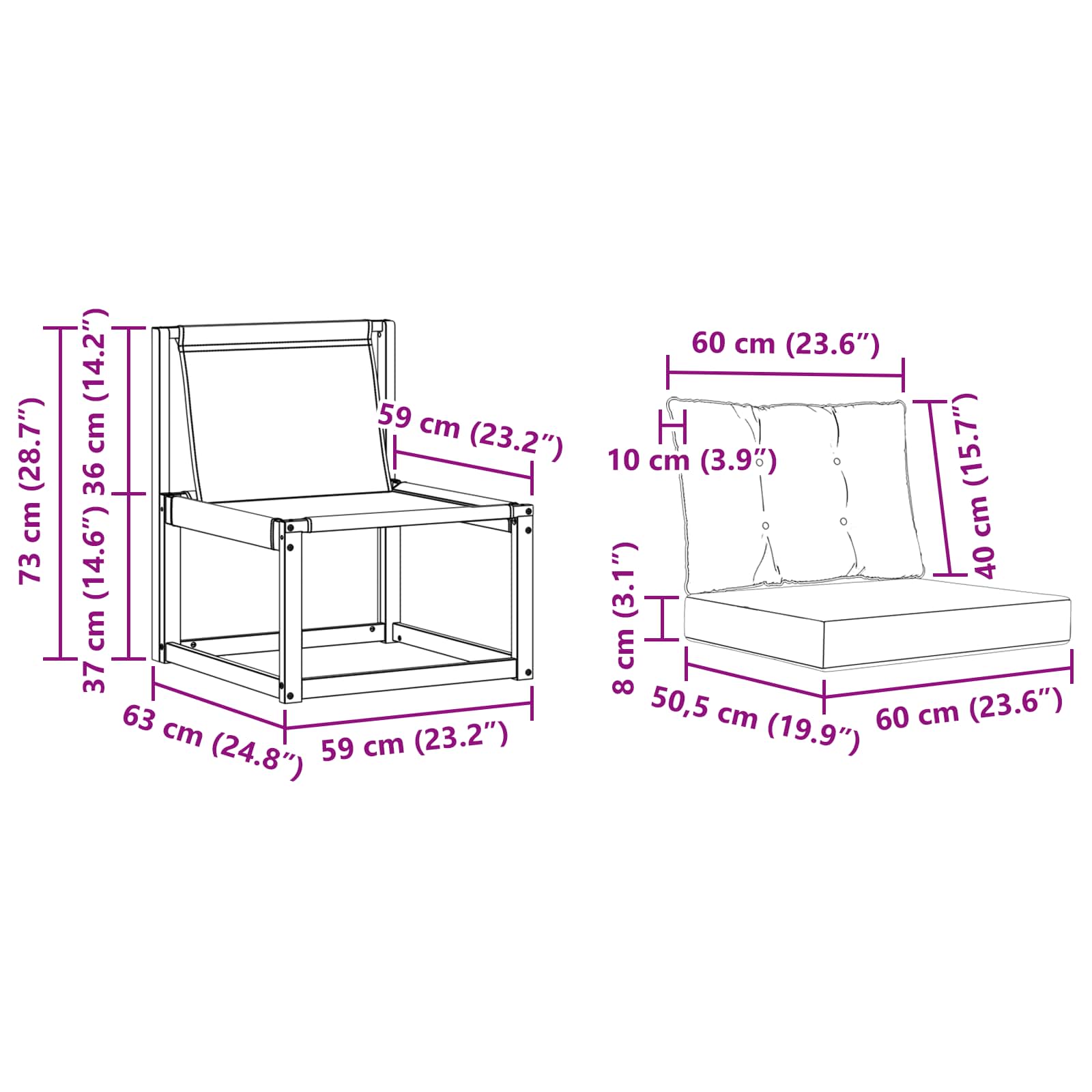 - 2 x okvirni naslon: 60 x 6 x 61 cm (D x Š x V)