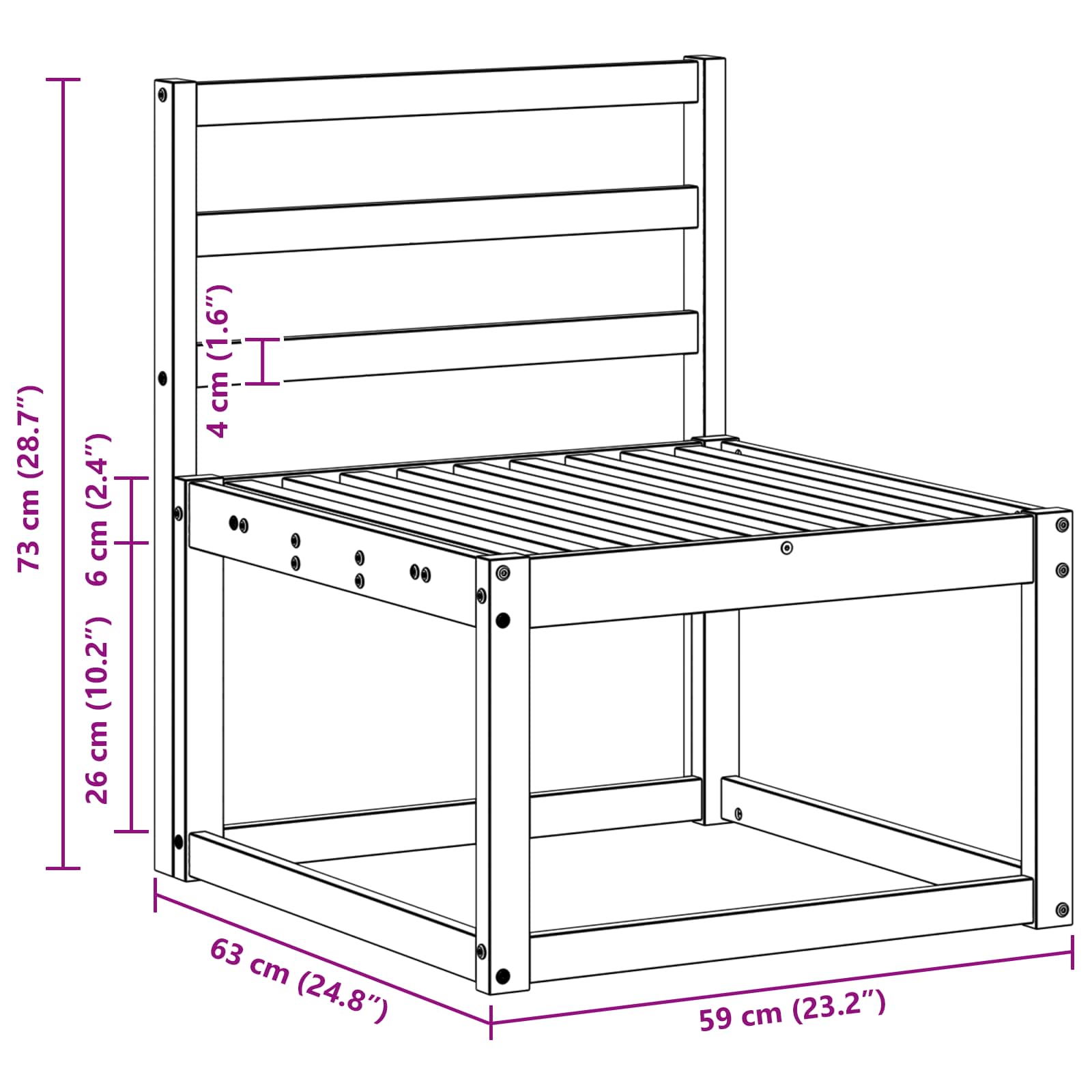 - 2 x Naslon: 59 x 4 x 73 cm (D x Š x V)