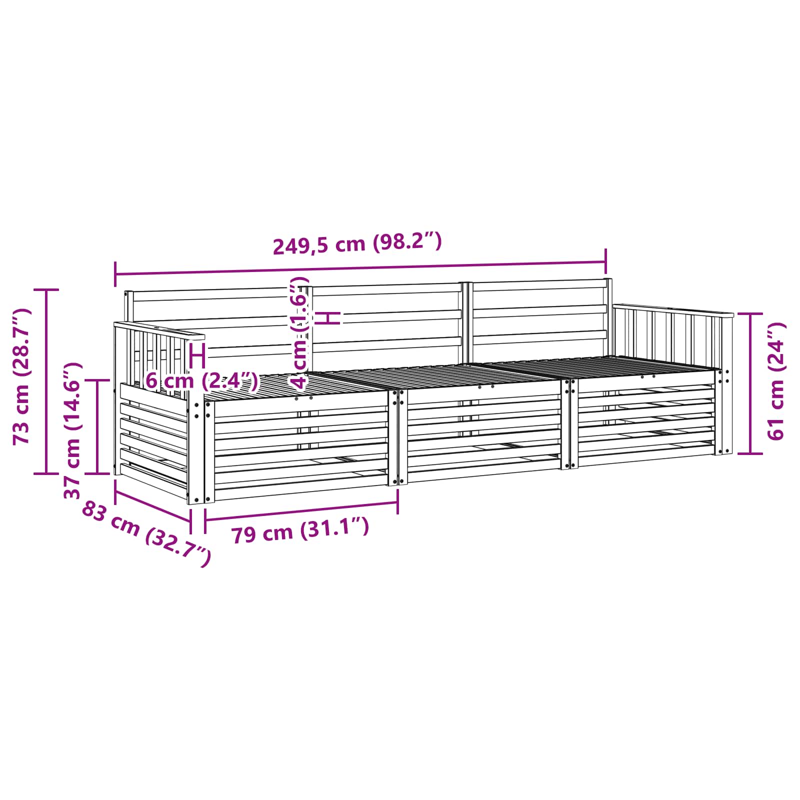 - Splošne dimenzije: 249,5 x 83 x 73 cm (D x Š x V)