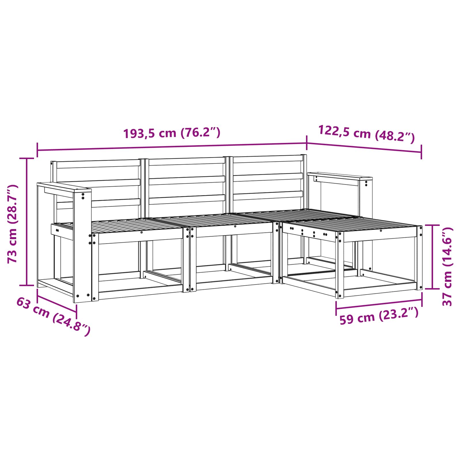 - 3 x Srednji kavč: 59 x 63 x 73 cm (D x Š x V)