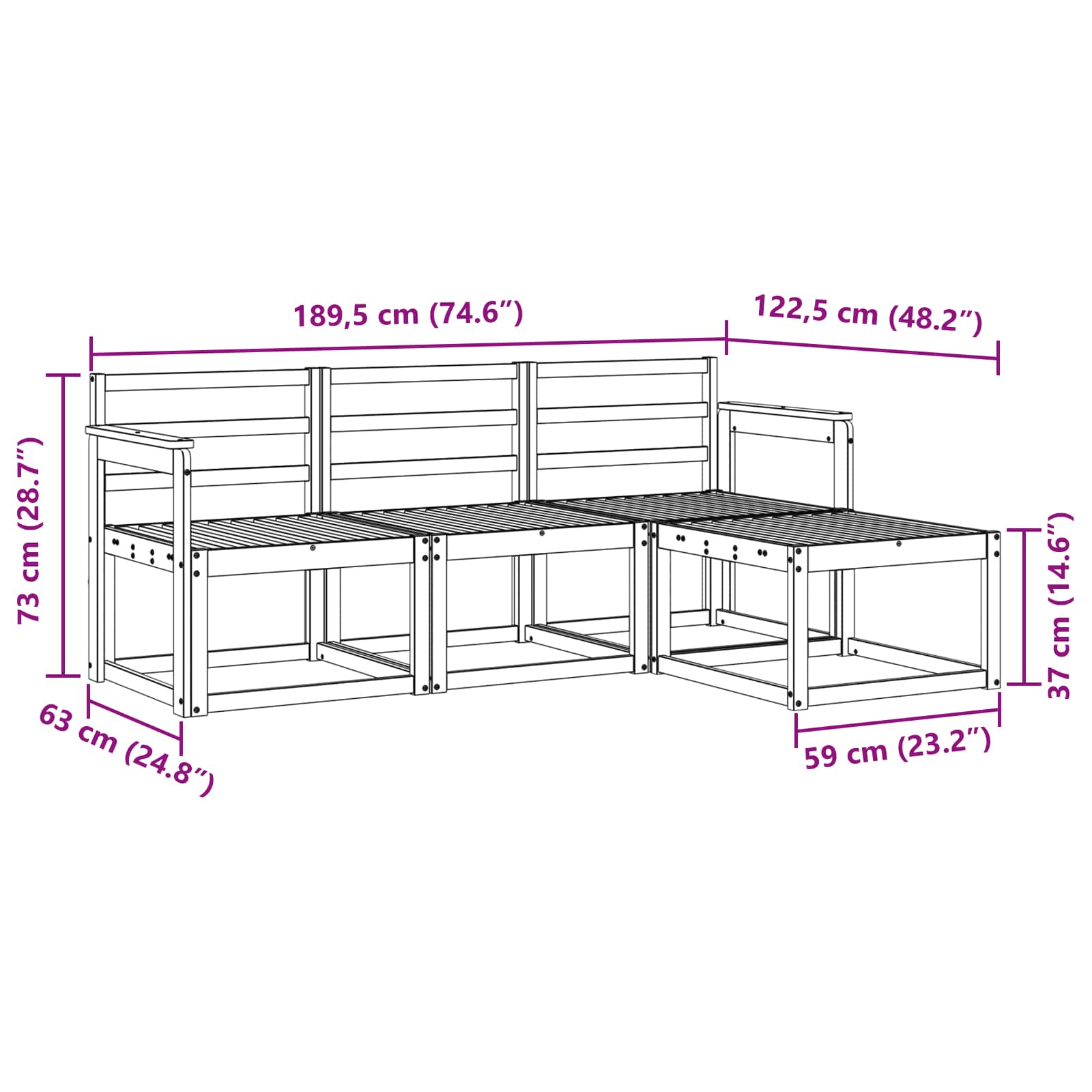 - 2 x Naslonjalo: 59 x 6 x 61 cm (D x Š x V)