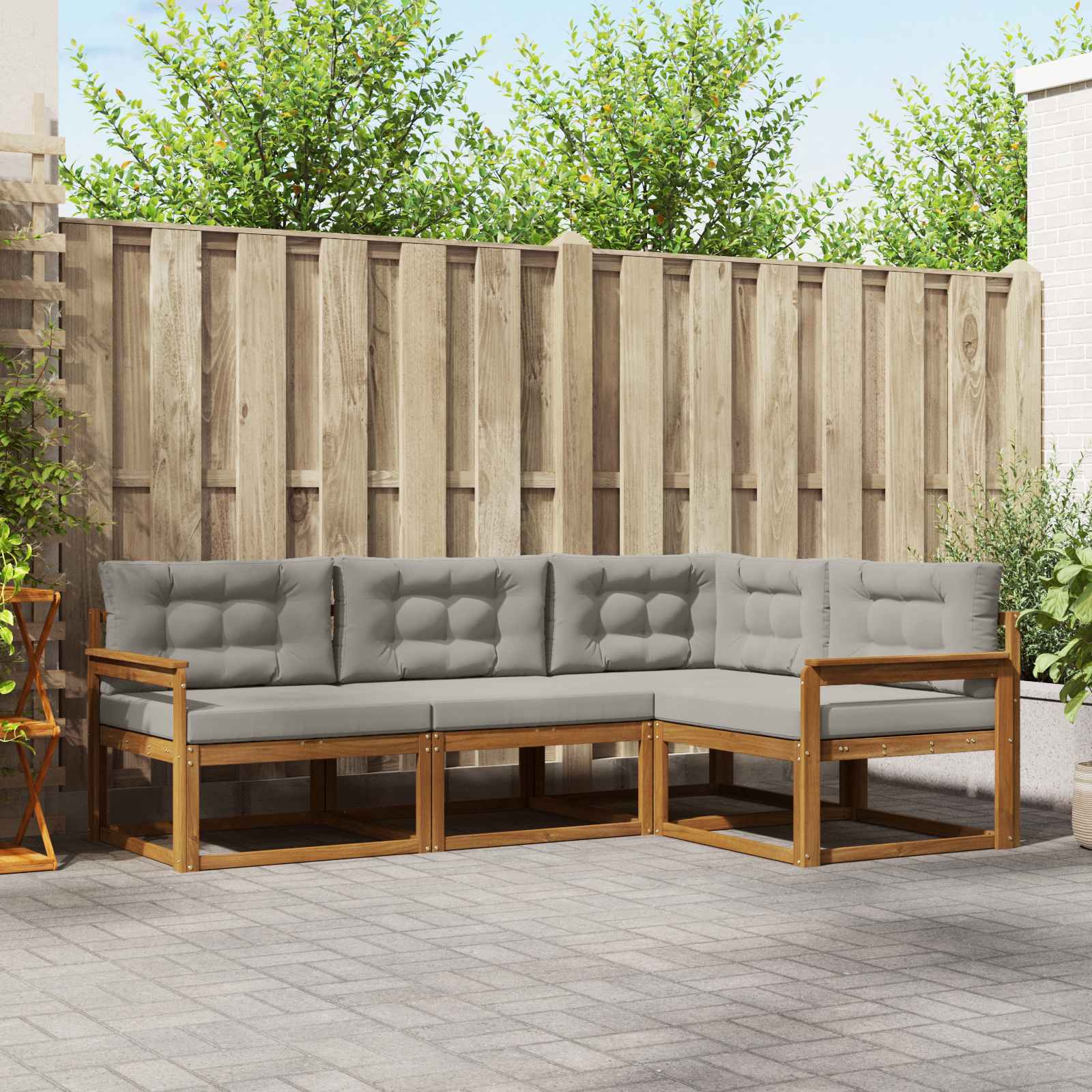 Ta zunanja sekcijska sedežna garnitura kombinira moden dizajn in trdnost, zato je odličen dodatek vsakega vrta ali terase. Čiste linije in minimalističen videz ji dajejo sodoben stil in nudijo udobno ter podporno izkušnjo sedenja. Njena rjava barva dopolnjuje zunanjo estetiko in ustvarja prijetno oazo za počitek ali družabna srečanja. Ne glede na to, ali se sproščate ob bazenu ali pripravljate večerjo na dvorišču, ta garnitura dvigne vzdušje s svojim stilskim in funkcionalnim privlačenjem. Vzdržljiv trden akacijev les: Celotna garnitura je iz trdnega akacijevega lesa, znanega po trdnosti in odpornosti. Njegova bogata rjava barva doda toplino in zagotavlja dolgo življenjsko dobo, tudi v različnih zunanjih pogojih. Akacija je trdna in zanesljiva ter tako prinaša mir, ker vlagate v dolgo življenjsko dobo zunanjega pohištva. Oblikovanje s letvami nazaj: Zasnova z letvicami na hrbtu maksimizira prezračevanje in udobje. Ta premišljena zasnova podporira hrbet in omogoča pretok zraka, kar je idealno za dolge ure na soncu. Upošteva tako videz kot funkcionalnost, zagotavlja udobje in stil. Vsaka letvica nudi dodatno podporo, kar povečuje izkušnjo sedenja. Modularna fleksibilnost: Modularna zasnova omogoča preureditev postavitve glede na prostor. Ta prilagodljivost jo naredi primerno za različne priložnosti, bodisi z majhnim kotičkom bodisi obsežno sedežno ureditev za večje dogodke. Njena fleksibilnost se ujema s sodobnim življenjem, saj ponuja prilagoditev in personalizacijo. Podporni nasloni za roke: Nasloni, narejeni iz akacije, povečujejo udobje. Dodajajo sodoben videz in zagotavljajo prijetno mesto za goste, da si odpočijejo. Njihova robustna konstrukcija izboljšuje izkušnjo sedenja in omogoča sprostitev. Enostavno vzdrževanje: Vzdrževanje te garniture je preprosto. Preprosto obrišite z vlažno krpo, da odstranite umazanijo. Ščiti pohištvo pred sončno svetlobo in občasno uporabite pokrov, ko ni v uporabi, da podaljšate življenjsko dobo. Enostavna navodila za nego zagotavljajo, da ostane v brezhibnem stanju, medtem ko se vi osredotočite na sprostitev.