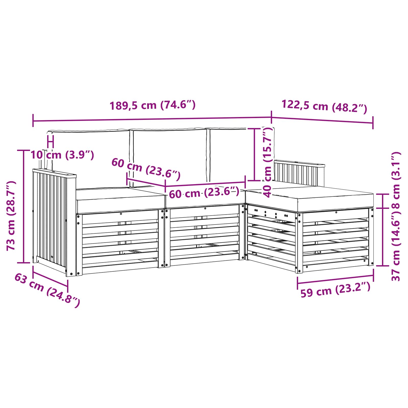 - 4 x Sedežne blazine: 60 x 60 x 8 cm (D x Š x V)