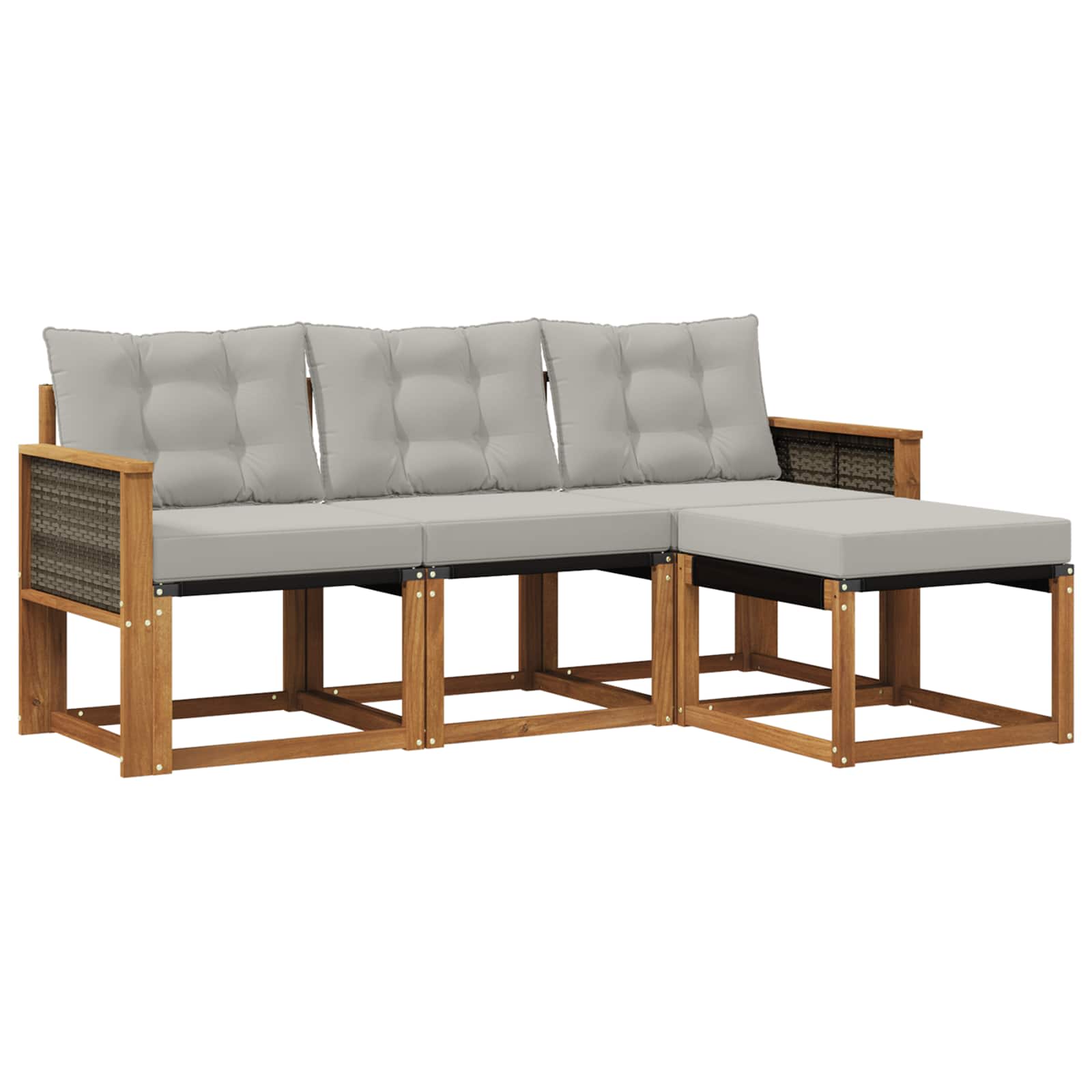 Zunanja garnitura združuje stil in funkcionalnost, kar jo naredi za središče vsakega vrta ali terase. Njena moderna zasnova s čistimi linijami ji daje eleganco, hkrati pa je odlična za sprostitev in druženje na prostem. Iz trdnega akacijevega lesa je trajna in videti lepa, kar je super za vse, ki iščejo praktično in lepo zunanjo pohištvo. Vzdržljiv trden akacijev les: Ta zunanja garnitura je znana po vzdržljivosti in odpornosti na vremenske razmere, saj je narejena iz trdnega akacijevega lesa. Njena trdna struktura nudi zanesljivo podporo in dolgo življenjsko dobo, medtem ko topli naravni odtenki obogatijo vrtnarske ali terasne prostore. Oblikovana za odpornost proti vremenskim vplivom: Garnitura ima lakiran zaključek, ki jo ščiti pred soncem, dežjem in drugimi zunanjimi pogoji. Poliran videz ohranja funkcionalnost in estetski videz, kar zagotavlja dolgo življenjsko dobo za vaše zunanje prostore. Komponente in zasnova: Vsak del, od naslonov do naslonov za roke, je zasnovan s stilom in funkcijo v mislih. Dodatna udobnost je zagotovljena s podporno zasnovo, ki vizualno harmonično dopolnjuje različne zunanje priložnosti. Udobje in prilagodljivost: Modulna zasnova omogoča različne postavitve, primerne za vsak prostor in potrebe. Odpira možnosti za sprostitev, družabne dogodke ali mirno branje, zato se garnitura brez truda prilagaja vsakemu zunanjemu okolju. Enostavno vzdrževanje: Očistite jo lahko samo z vlažno krpo in se izogibajte ostrim čistilom. Redno vzdrževanje podaljšuje življenjsko dobo in ohranja njen videz.