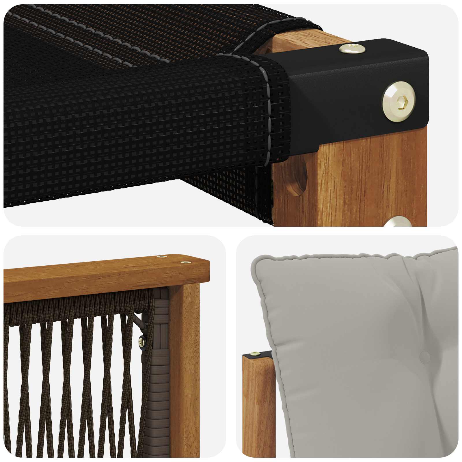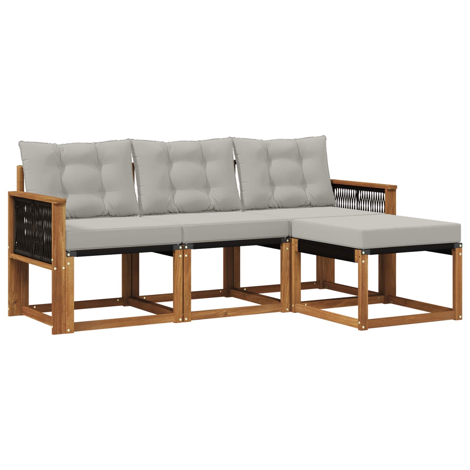 Zunanja garnitura združuje stil in funkcionalnost, kar jo naredi za središče vsakega vrta ali terase. Njena moderna zasnova s čistimi linijami ji daje eleganco, hkrati pa je odlična za sprostitev in druženje na prostem. Iz trdnega akacijevega lesa je trajna in videti lepa, kar je super za vse, ki iščejo praktično in lepo zunanjo pohištvo. Vzdržljiv trden akacijev les: Ta zunanja garnitura je znana po vzdržljivosti in odpornosti na vremenske razmere, saj je narejena iz trdnega akacijevega lesa. Njena trdna struktura nudi zanesljivo podporo in dolgo življenjsko dobo, medtem ko topli naravni odtenki obogatijo vrtnarske ali terasne prostore. Oblikovana za odpornost proti vremenskim vplivom: Garnitura ima lakiran zaključek, ki jo ščiti pred soncem, dežjem in drugimi zunanjimi pogoji. Poliran videz ohranja funkcionalnost in estetski videz, kar zagotavlja dolgo življenjsko dobo za vaše zunanje prostore. Komponente in zasnova: Vsak del, od naslonov do naslonov za roke, je zasnovan s stilom in funkcijo v mislih. Dodatna udobnost je zagotovljena s podporno zasnovo, ki vizualno harmonično dopolnjuje različne zunanje priložnosti. Udobje in prilagodljivost: Modulna zasnova omogoča različne postavitve, primerne za vsak prostor in potrebe. Odpira možnosti za sprostitev, družabne dogodke ali mirno branje, zato se garnitura brez truda prilagaja vsakemu zunanjemu okolju. Enostavno vzdrževanje: Očistite jo lahko samo z vlažno krpo in se izogibajte ostrim čistilom. Redno vzdrževanje podaljšuje življenjsko dobo in ohranja njen videz.