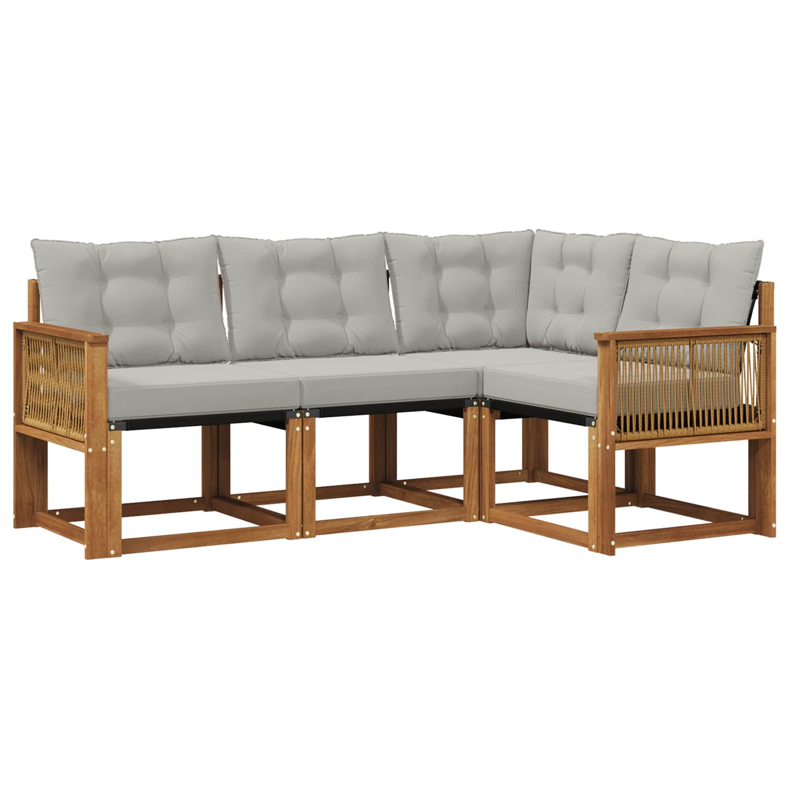 Ta zunanji pohištveni set združuje stil in funkcionalnost in je idealno središče za vsak vrt ali teraso. Njegov moderen dizajn z čistimi linijami in minimalističnimi detajli prinaša eleganco, hkrati pa ustvarja sproščujočo in družabno vzdušje na prostem. Narejen iz trdnega akacijevega lesa, set zagotavlja dolgotrajno vzdržljivost in lepoto, kar ga naredi za popolno izbiro za vsakogar, ki išče praktičnost in izjemen dizajn zunanjega pohištva. Vzdržljiv trden akacijev les: Ta zunanja pohištvena garnitura je znana po svoji vzdržljivosti in odpornosti. Močna konstrukcija nudi zanesljivo oporo in dolgo življenjsko dobo, medtem ko topli naravni ton obogati vsako okolico. Vremensko odporen dizajn: Lakirana površina zagotavlja dodatno zaščito pred soncem in rahlim dežjem. Polirana površina ohranja videz in funkcionalnost, kar zagotavlja dolgo življenjsko dobo za vaš vrt ali teraso. Komponente in dizajn: Vsak kos je zasnovan za slog in funkcijo. Podporni elementi nudijo dodatno udobje, kohezivni dizajn pa zagotavlja vizualno harmonijo, primerno za različna zunanja druženja. Udobje in prilagodljivost: Modularna zasnova omogoča prilagodljive nastavitve za različne potrebe. Idealen za sprostitev, družabne trenutke ali mirno branje, ta set se brez težav prilagaja kakršnemu koli prostoru in maksimira udobje. Enostavno vzdrževanje: Samo obrišite z vlažno krpo, da ohranite pohištvo v dobrem stanju. Izogibajte se agresivnim čistilom, redno vzdrževanje podaljša življenjsko dobo pohištva.