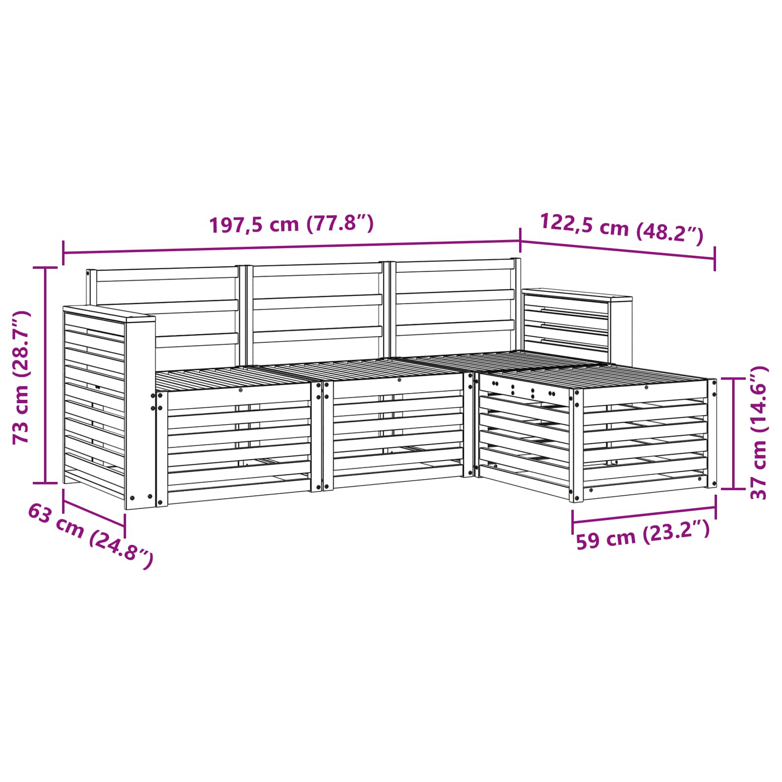 - 1 x Hoker: 59 x 59 x 37 cm (D x Š x V)