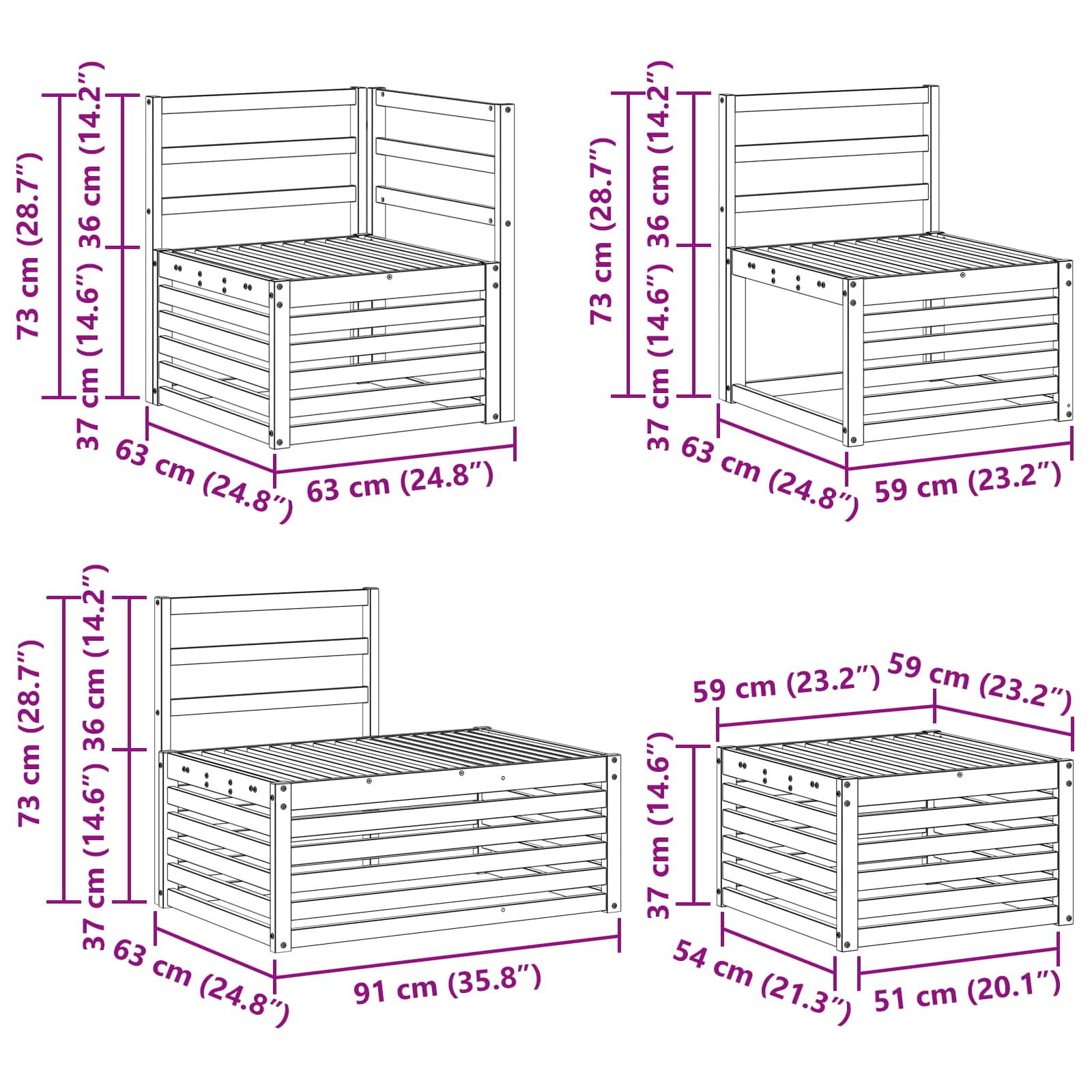 - 1 x Srednja kavč: 59 x 63 x 73 cm (D׊×V)