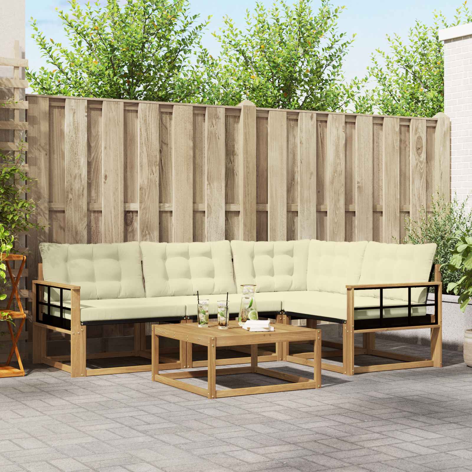 Ta moderna garnitura za sedenje je odlična izbira za izboljšanje vašega zunanjega prostora, saj nudi stil in funkcionalnost. S svojo preprosto zasnovo in robustno konstrukcijo se lepo poda vsakemu vrtu ali terasi. Uporabite jo za organizacijo srečanj ali za uživanje v mirnih trenutkih, ker nudi udobno sedenje in estetsko privlačnost. Okvir iz trdnega akacijevega lesa: Garnitura ima trden okvir iz akacijevega lesa, ki je znan po svoji vzdržljivosti in naravni teksturi, kar lepo dopolnjuje zunanji ambient. Njegova bogata barva daje topel in prijeten videz ter nudi moč za vsakodnevno uporabo. Udoben Textilene: Tkanina Textilene v blazinah in naslonjalu nudi dihljivo udobje in je odporna na bledenje in obrabo. Ta izbira materiala zagotavlja svež in udoben občutek, idealen za sproščanje na prostem. Modularna prilagodljivost: Modularna zasnova garniture omogoča različne sedežne postavitve, kar zagotavlja prilagodljivost za vsa zunanjska srečanja. Enostavno preuredite kose in ustvarite unikatne nastavitve za majhne in velike skupine. Vremensko odporne komponente: Z vremensko odpornimi blazinami in materiali, zasnovanimi za zunanjo uporabo, garnitura zdrži vlažnost in UV žarke. Vsaka komponenta je zasnovana tako, da prenese različne vremenske dejavnike. Preprosto vzdrževanje: Garnitura zahteva minimalno skrb; le obrišite z vlažno krpo, da ohranite njen videz. Enostavna oskrba za prijetno zunanje mesto za sedenje.