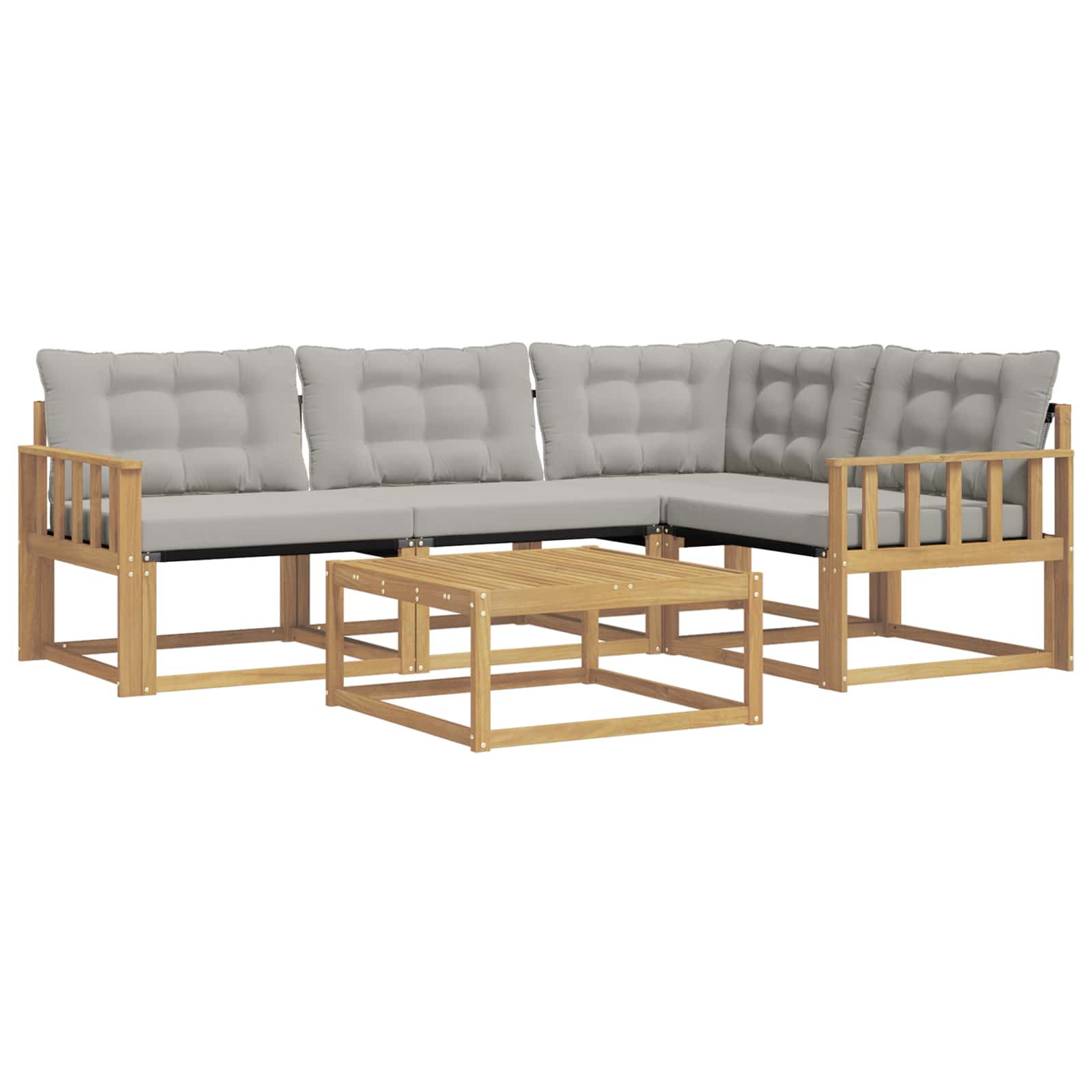 Ta moderna garnitura za sedenje je odlična izbira za izboljšanje vašega zunanjega prostora, saj nudi stil in funkcionalnost. S svojo preprosto zasnovo in robustno konstrukcijo se lepo poda vsakemu vrtu ali terasi. Uporabite jo za organizacijo srečanj ali za uživanje v mirnih trenutkih, ker nudi udobno sedenje in estetsko privlačnost. Okvir iz trdnega akacijevega lesa: Garnitura ima trden okvir iz akacijevega lesa, ki je znan po svoji vzdržljivosti in naravni teksturi, kar lepo dopolnjuje zunanji ambient. Njegova bogata barva daje topel in prijeten videz ter nudi moč za vsakodnevno uporabo. Udoben Textilene: Tkanina Textilene v blazinah in naslonjalu nudi dihljivo udobje in je odporna na bledenje in obrabo. Ta izbira materiala zagotavlja svež in udoben občutek, idealen za sproščanje na prostem. Modularna prilagodljivost: Modularna zasnova garniture omogoča različne sedežne postavitve, kar zagotavlja prilagodljivost za vsa zunanjska srečanja. Enostavno preuredite kose in ustvarite unikatne nastavitve za majhne in velike skupine. Vremensko odporne komponente: Z vremensko odpornimi blazinami in materiali, zasnovanimi za zunanjo uporabo, garnitura zdrži vlažnost in UV žarke. Vsaka komponenta je zasnovana tako, da prenese različne vremenske dejavnike. Preprosto vzdrževanje: Garnitura zahteva minimalno skrb; le obrišite z vlažno krpo, da ohranite njen videz. Enostavna oskrba za prijetno zunanje mesto za sedenje.