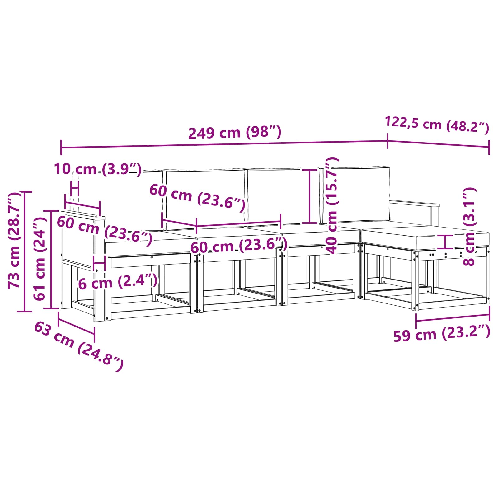 - 5 x Sedežna blazina: 60 x 60 x 8 cm (D x Š x V)
