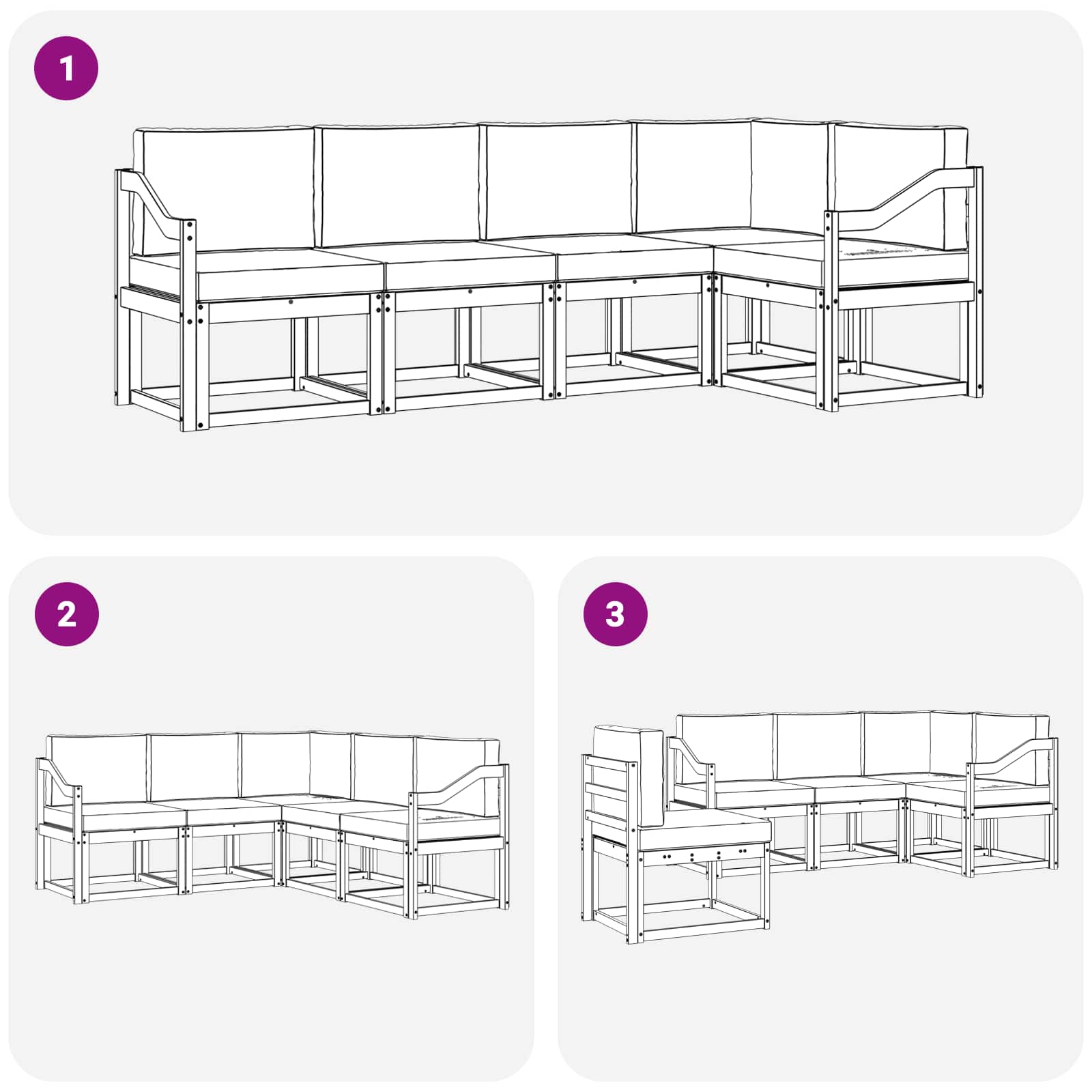 - 5 x sedežna blazina: 60 x 60 x 8 cm (D x Š x V)