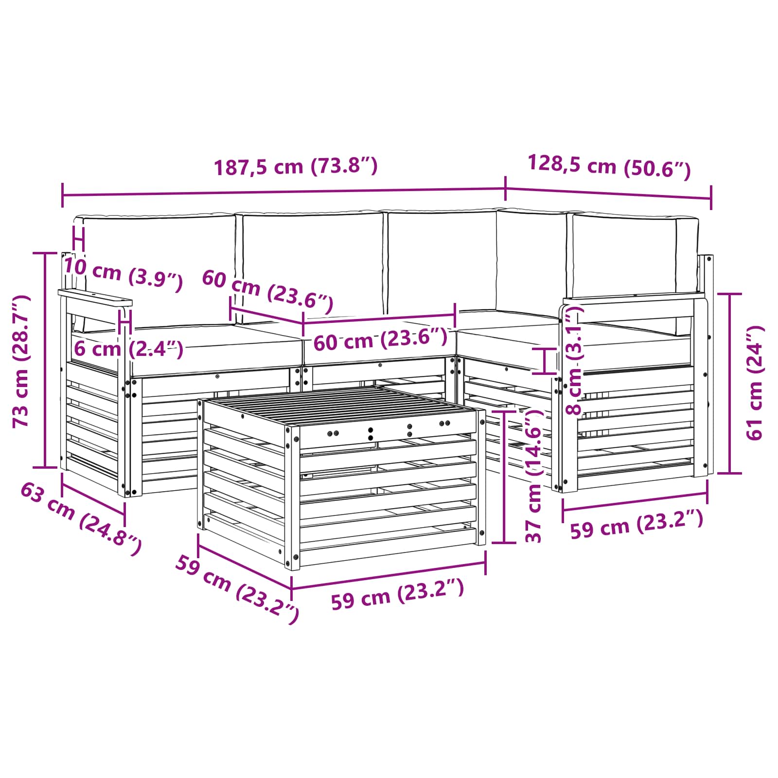 - 5 x Nazadnja blazina: 60 x 40 x 10 cm (D x Š x V)
