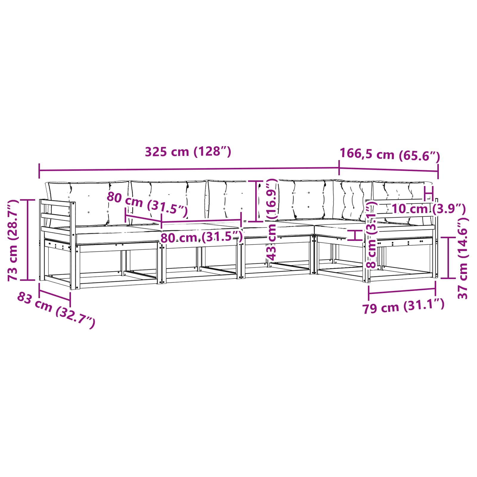 - 5 x Sedežna blazina: 80 x 80 x 8 cm (D x Š x V)