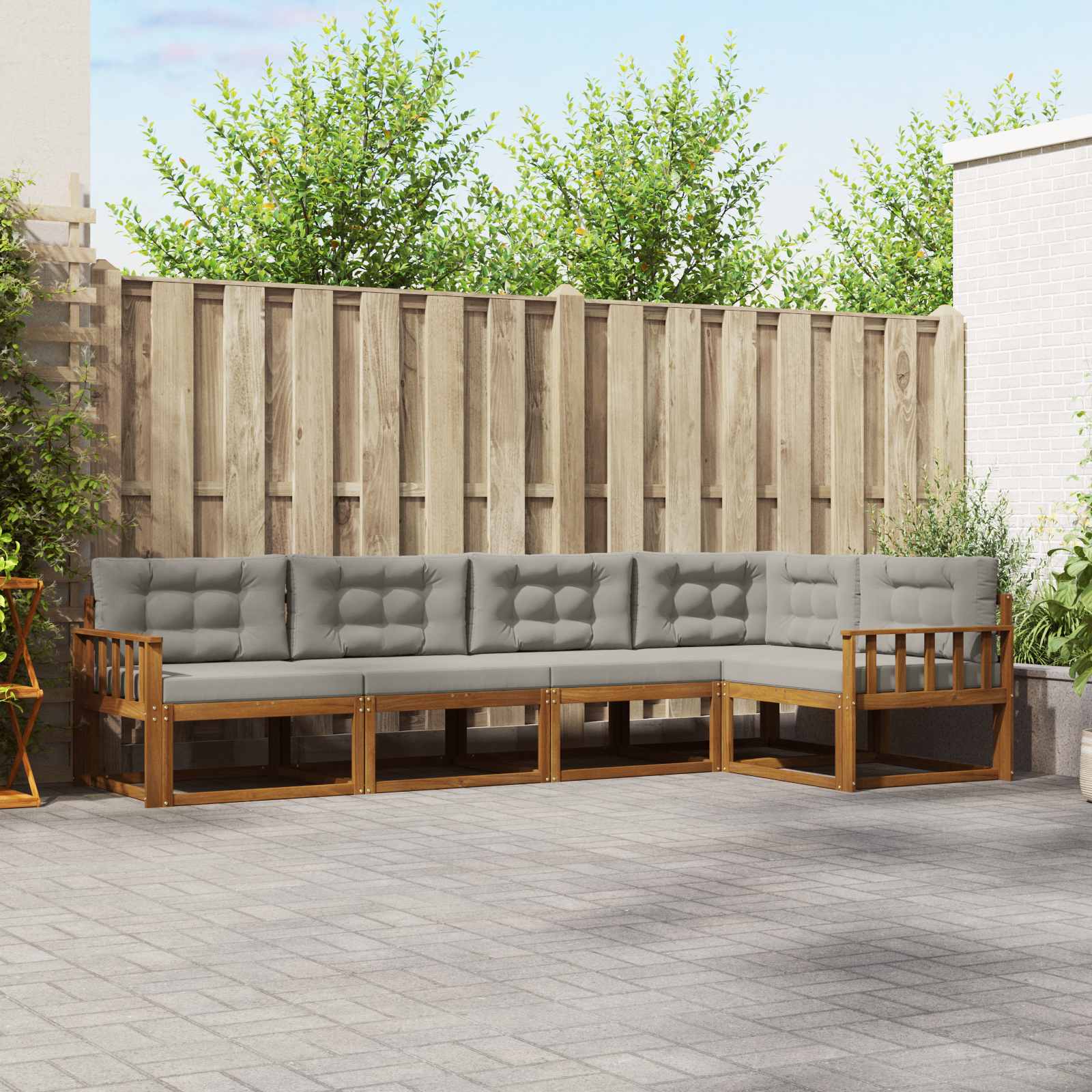 Ta zunanji sekcijski kavč povezuje stil in funkcionalnost, kar tvori osrednje mesto za sprostitev in zabavo. Čiste linije in minimalna okrasitev so značilni za njegov sodoben videz, kar ga dela super izbira za sončne jutranje ali prijetne večere. Naravna rjava barva se lepo prilega različnim ambientom in ponuja usklajen izgled, ki vabi goste, da uživajo v stilu in udobju. Premium acacijeva konstrukcija Kvaliteten trden akacijev les nudi stabilnost in dolgotrajno uporabo, kar zagotavlja udobje in modernost v tvojem zunanjem prostoru. Ta robusten material je odličen za različne vremenske razmere. Oblikovanje z letvicami Uživaj v udobju z elegantnim naslonom, ki združuje življenje in priročnost. Letvice so pametno razporejene, kar zagotavlja dobro prezračevanje in podporo. Funkcionalni nasloni Set je opremljen s trdnimi nasloni, ki nudijo dodatno udobje in podporo, kar izboljša tvoje sprostitvene trenutke. Ti nasloni so ergonomskega dizajna. Modularna fleksibilnost Ta kavč se lahko prilagodi vsakem prostoru in postavitvi. Zelo enostavno preurediš komponente, da ustvariš prostor za družabne priložnosti, vse od intimnih druženj do zabav. Celovita oskrba Za ohranitev videza seta ga obriši z vlažno krpo. Izogibaj se ostri sončni svetlobi in uporabi prevleko, ko ni v rabi, da podaljšaš njegovo življenjsko dobo.