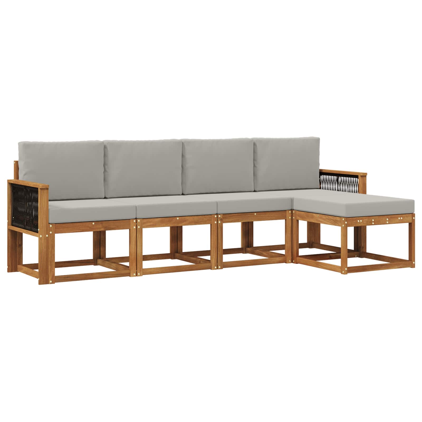 Ta zunanja sekcijska sedežna garnitura združuje stil in funkcionalnost, kar je idealno za moderne vrtove in terase. S čistimi linijami in minimalističnim dizajnom je eleganten dodatek za sprostitev ali zabavo ob vas. Njena privlačna podoba je dopolnjena s trdno konstrukcijo, ki zdrži vse vremenske razmere, zato je odlična izbira za katerokoli zunanjo okolje. Materiali: Vsak kos je narejen iz trdnega akacijevega lesa, ki je znan po svoji odpornosti in naravni trajnosti. Fine vene in bogata barva lesa dodata luksuzen videz vsakemu zunanjemu prostoru, hkrati pa ne zahtevata veliko vzdrževanja. Vključene komponente: Set vključuje trdna naslonjala, hrbtno podlago in sedež, vsi v enotni, živahni rjavi barvi za privlačen in udoben videz. Oblikovanje z letvicami dodaja vizualni interes in omogoča učinkovito odvodnjavanje. Lastnosti / funkcija / dizajn: Oblikovan je tako, da spodbuja kroženje zraka, kar je udobno tudi v vročih mesecih. Njegova funkcionalnost omogoča prilagoditev sedežev, kar povečuje fleksibilnost vašega zunanjega prostora s prefinjenim stilom. Priporočene uporabe: Zasnovana izključno za zunanje uporabo, je ta garnitura idealna za vrtove, terase ali katero koli odprto površino. Odlična je za vrtnarske zabave ali sprostitev s prijatelji in družino, saj se lepo poda k različnim zunanjim dekorjem. Vzdrževanje: Montaža zahteva dva človeka in izvijač, pri čemer je pomembno, da natančno sledite navodilom za dobro prileganje. Da obdržite njen prvotni izgled, jo je treba čistiti s suho krpo in zaščititi z prevlekami v primeru slabega vremena.