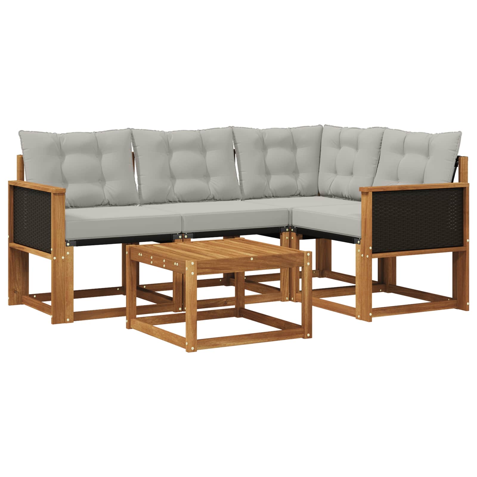 Ta moderni sedežni komplet brez truda dvigne vsak zunanji prostor. Primeren je za vrt, teraso, dvorišče ali ob bazenu in navdušuje s preprostim in funkcionalnim dizajnom. Čiste linije in minimalni okraski ustvarjajo ravnotežje med udobjem in elegantnim videzom. Materiali: Narejen iz kakovostnega akacijevega lesa, kar zagotavlja odpornost na zunanje dejavnike. Textilene sedežna površina pa nudi prijetno teksturo in je odporna na bledenje. Vključene komponente: Komplet vključuje odstranljive zunanje blazine, ki so pritrjene z zadrgami. Te blazine povečujejo udobje in olajšujejo nego, ohranjajoč privlačen videz skozi čas. Lastnosti / funkcija / dizajn: Uživajte v praktični mizi, zasnovani za odvajanje vode po dežju. Debele blazine obkrožajo udoben naslon, ki nudi luksuzno udobje pri druženju ali sprostitvi. Priporočene uporabe: Ta vsestranski komplet je odlična izbira za terase in dvorišča ter nudi prijetno okolje za goste ali mirne trenutke. Njegova prilagodljivost ga je primerna za različne dejavnosti na prostem. Negovanje in vzdrževanje: Zahtevana je le minimalna oskrba. Preprosto obrišite z vlažno krpo za čiščenje. Vremensko odporne blazine zagotavljajo dolgotrajno svežino in enostavno vzdrževanje skozi vse leto.