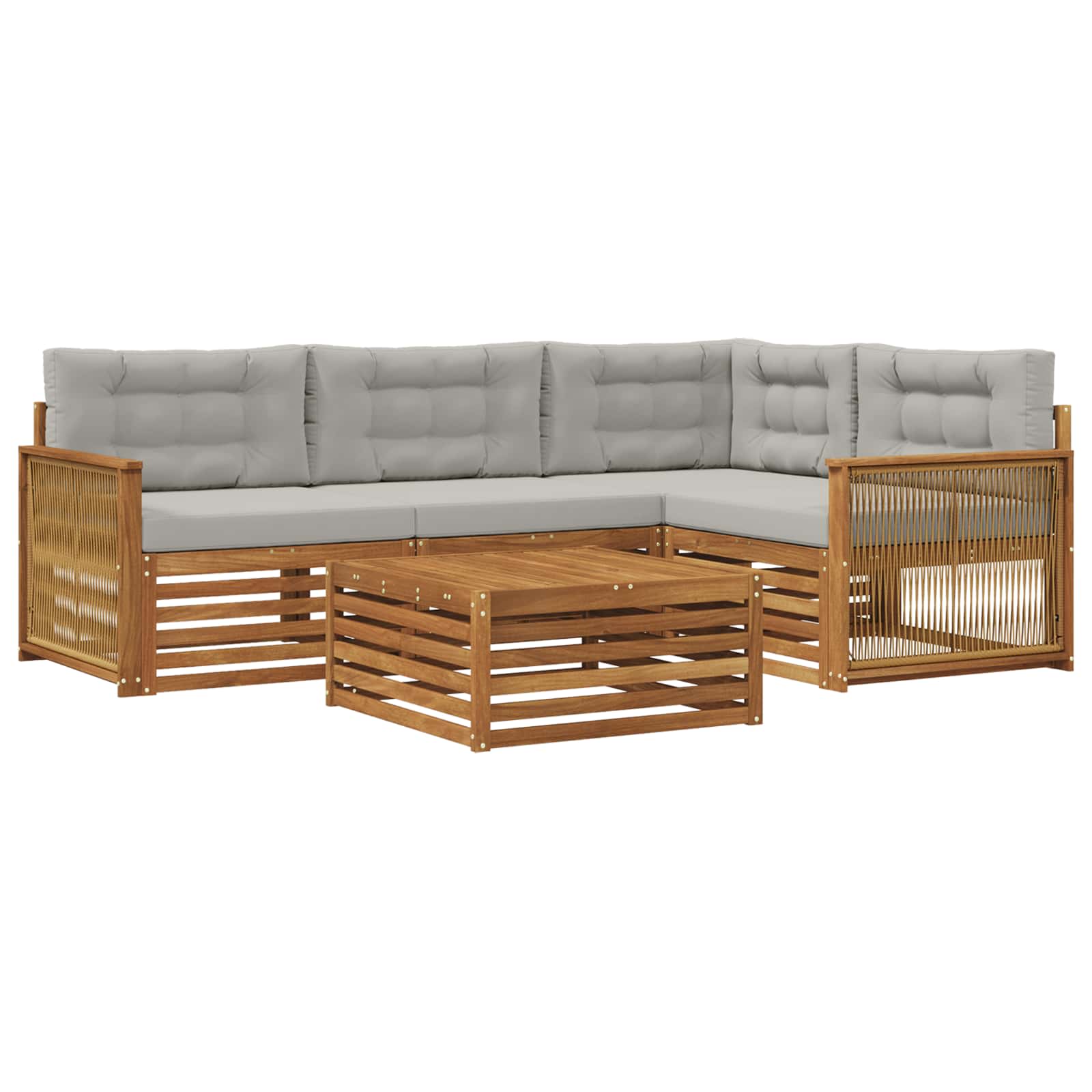 Komplet zunanjega pohištva združuje stil in funkcionalnost ter se lepo prilega vsakemu vrtu ali terasi. Njegova moderna zasnova s čistimi linijami in minimalno okrasjem dodaja eleganco ter omogoča sprostitev in druženje na prostem. Celega ga izdelajo iz trdnega akacijevega lesa, kar zagotavlja trpežnost in dolgotrajno privlačnost, kar je popolna izbira za tiste, ki iščejo praktično, a tudi lepo pohištvo za na prostem. Vzdržljiv trden akacijev les: Ta set je izdelan iz trdnega akacijevega lesa, poznanega po svoji trpežnosti in odpornosti na zunanje dejavnike. Stabilna konstrukcija nudi zanesljivo oporo in dolgotrajno stabilnost, naravna barva pa obogati vsak vrt ali teraso. Oblikovanje, odporno na vreme: Set ima lakirano površino, ki ponuja dodatno zaščito pred soncem in dežjem ter okoljskimi vplivi. Polirana obdelava ohranja privlačnost in funkcionalnost, kar zagotavlja dolgotrajno trpežnost za vaš vrt ali dvorišče. Komponente in zasnova: Vsak del, od naslonov do sedežnih površin, je zasnovan za estetiko in udobje. Opora nudi dodatno udobje ter ustvarja usklajen dizajn, primeren za razne zunanje dogodke. Udobje in vsestranskost: Modularna zasnova omogoča prilagodljive konfiguracije, ki ustrezajo vašim potrebam. Idealno za sprostitev, družabna srečanja ali mirno branje, ta set se zlahka prilagodi vsakemu zunanjemu okolju in maksimira udobje. Enostavna nega in vzdrževanje: Vzdrževanje pohištva je enostavno, dovolj je, da ga obrišite z vlažno krpo in se izogibate ostrim čistilom. Redna nega ohranja njegov videz in podaljšuje življenjsko dobo pohištva.