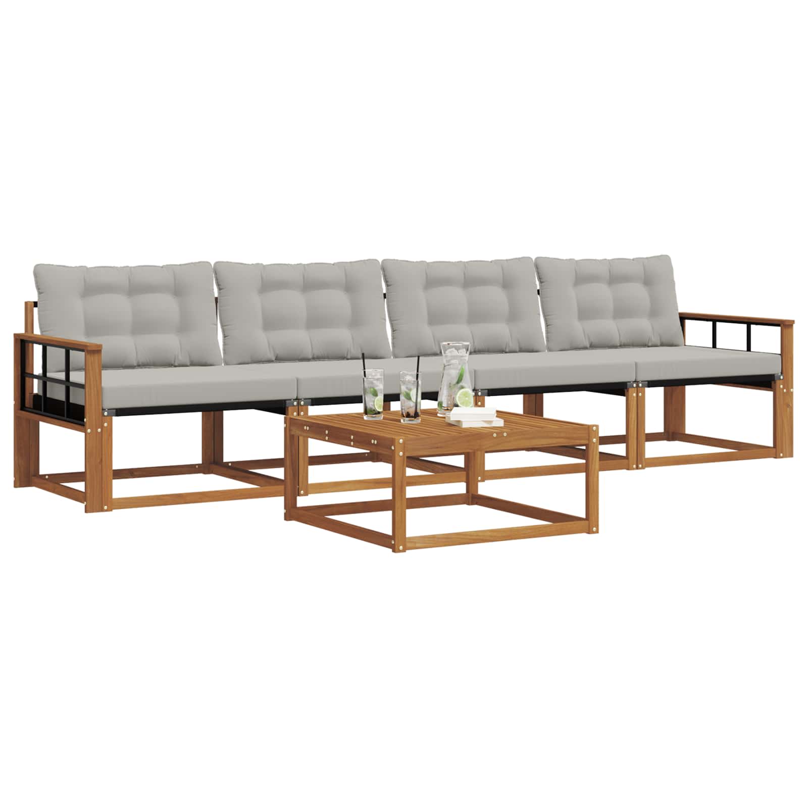Ta set zunanjega pohištva združuje stil in funkcionalnost ter postane glavna točka vsakega vrta ali terase. Moderna oblika s čistimi linijami in minimalnimi detajli daje pridih elegance, hkrati pa omogoča sprostitev na prostem in druženje. Narejen iz trdnega akacijevega lesa, set zagotavlja dolgo življenjsko dobo in privlačen videz, zato je odlična izbira za tiste, ki iščejo praktičnost in lepo zasnovo v svojem zunanjem pohištvu. Trpežen akacijev les: Ta set pohištva je izdelan iz kakovostnega akacijevega lesa, ki je znan po svoji dolgi življenjski dobi. Močna konstrukcija ti zagotavlja zanesljivo podporo, naravna barva pa lepo dopolnjuje vsak vrt ali teraso. Vremensko odporna zasnova: Set ima lakirano površino, ki doda dodatno zaščito pred soncem in lahnim dežjem. Polirana končna obdelava ohranja videz in funkcionalnost, kar pomeni dolgo uporabo v tvojem vrtu ali na terasi. Udobje in funkcionalnost: Vsak kos, od naslonov za roke do hrbtnih naslonov, je zasnovan za udobje. Usklajena zasnova nudi prijeten vizualni učinek, primeren za različne zunanje priložnosti. Enostavno vzdrževanje: Da ohraniš pohištvo v dobrem stanju, samo obriši površino z vlažno krpo. Izogibaj se ostrim čistilom. Redno vzdrževanje podaljšuje življenjsko dobo pohištva.