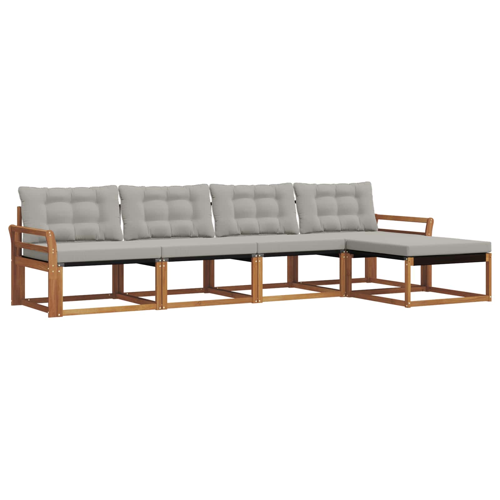 Ta set zunanjega pohištva je odličen spoj sloga in funkcionalnosti in bo postal pravi osrednji kos za vsak vrt ali teraso. S svojo moderno zasnovo, ki vključuje čiste linije in preprosto obliko, doda eleganco, hkrati pa omogoča sproščanje na prostem in druženje s prijatelji. Izdelan je iz trdnega akacijevega lesa, kar pomeni, da je vzdržljiv in lepo izgleda, kar ga naredi idealno izbiro za tiste, ki iščejo kombinacijo praktičnosti in estetske vrednosti pohištva za prosti čas. Vzdržljiv trden akacijev les: Ta set zunanjega pohištva je znan po svoji trpežnosti in odpornosti proti zunanjim vplivom. Trdna konstrukcija nudi zanesljivo podporo ter zagotavlja stabilnost, medtem ko topel naravni ton obogati vaš vrt ali teraso. Oblikovanje, odporna na vremenske vplive: Lakirana površina seta nudi dodaten sloj zaščite pred soncem, dežjem in drugimi zunanjimi pogoji. Poliran zaključek pomaga ohranjati funkcionalnost ter videz in zagotavlja dolgotrajno vzdržljivost za vaš vrt, teraso ali dvorišče. Komponente in zasnova: Vsaka komponenta, od naslonjal do sedišč, je zasnovana ker je funkcionalna in stylish. Podporne lastnosti nudijo udobje, medtem ko kohezivna zasnova zagotavlja prijeten vizualni učinek, primeren za različne zunanje priložnosti. Udobje in prilagodljivost: Modularna zasnova omogoča fleksibilne postavitve, ki se prilagajajo različnim potrebam. Odlična je za sprostitev, družabna srečanja ali mirne trenutke branja, saj se brez težav prilega v vsak zunanji prostor, kar maksimira udobje in funkcionalnost. Enostavno vzdrževanje: Da bi pohištvo ostalo v dobrem stanju, obrišite površino z vlažno krpo in se izogibajte ostrim ali abrazivnim čistilom. Redno vzdrževanje bo pomagalo ohraniti njegov videz in podaljšati življenjsko dobo pohištva.