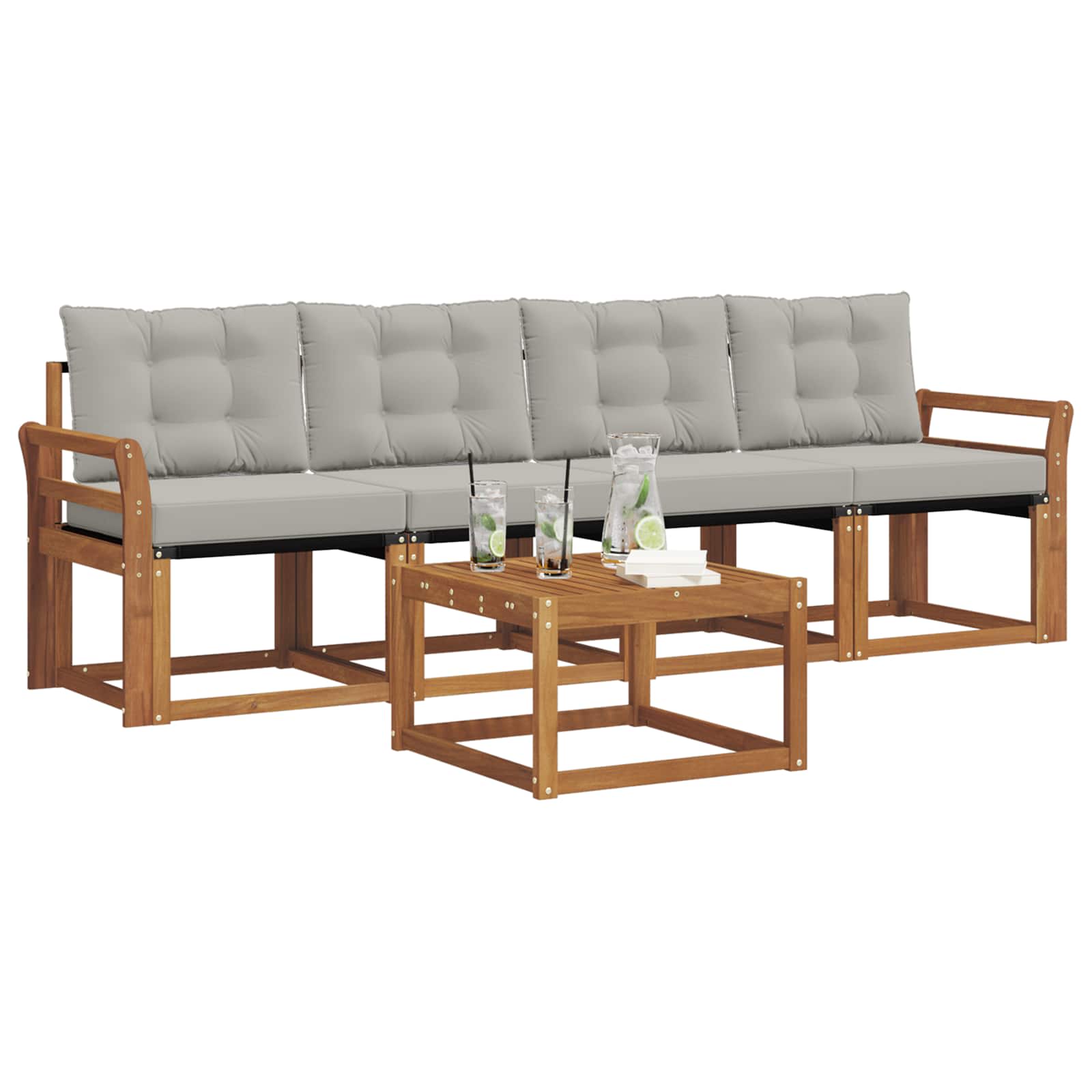 Set zunanjega pohištva združuje slog in funkcionalnost, kar ustvarja središče za vaš vrt ali teraso. Moderna zasnova, s čistimi linijami in minimalističnimi detajli, dodaja eleganco in spodbuja sprostitev ter druženje na prostem. V celoti je narejen iz trdnega akacijevega lesa, kar zagotavlja dolgotrajno vizualno privlačnost in je idealna izbira za tiste, ki iščejo praktičnost in stil pri zunanjem pohištvu. Vzdržljiv trden akacijev les: Ta set je izdelan iz trdnega akacijevega lesa, kar mu daje dolgotrajno stabilnost in odpornost na zunanje pogoje. Naravni ton lepo dopolnjuje vsak zunanji prostor. Oblikovanje odporne na vreme: Lakirana površina nudi zaščito pred soncem in rahlim dežjem, kar pomaga ohranjati videz in funkcionalnost. Ta set je zasnovan tako, da zdrži skozi čas v vašem vrtu, na terasi ali dvorišču. Komponente in zasnova: Vsak kos je zasnovan s stilom in funkcionalnostjo v mislih. Udobne značilnosti ponujajo dodatno podporo, celotna zasnova pa se ujema, kar je primerno za vse vrste zunanjih priložnosti. Udobje in vsestranskost: Modularna zasnova omogoča enostavno prilagajanje postavitve, kar je idealno za različne prostore in potrebe. Ta set je popoln za druženje ali sprostitev in se prilagodi vsem zunanjim okoljem. Enostavno vzdrževanje: Za ohranjanje pohištva v odličnem stanju ga prečistite z vlažno krpo in se izognite ostrim sredstvom. Redna oskrba podaljšuje življenjsko dobo in ohranja videz pohištva.