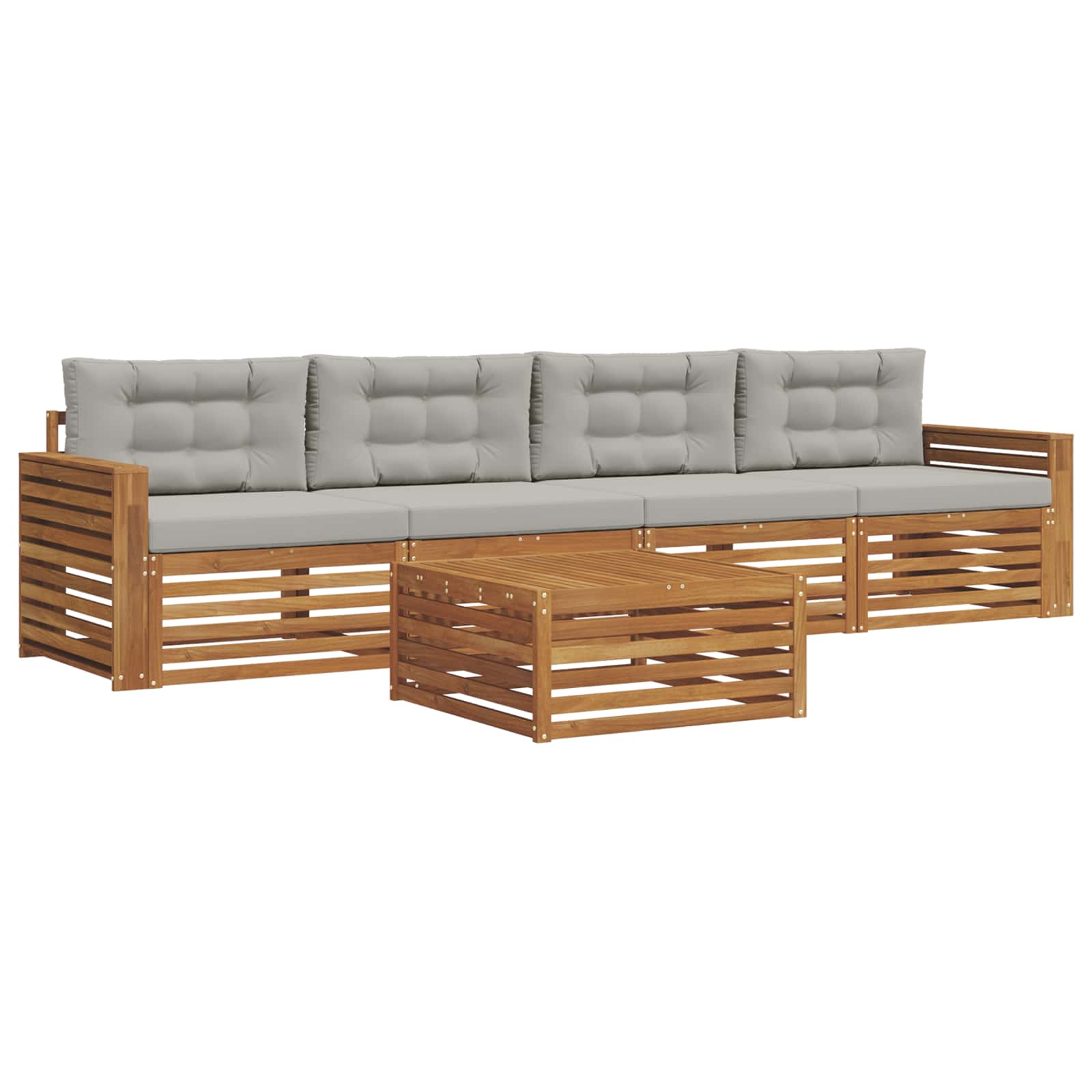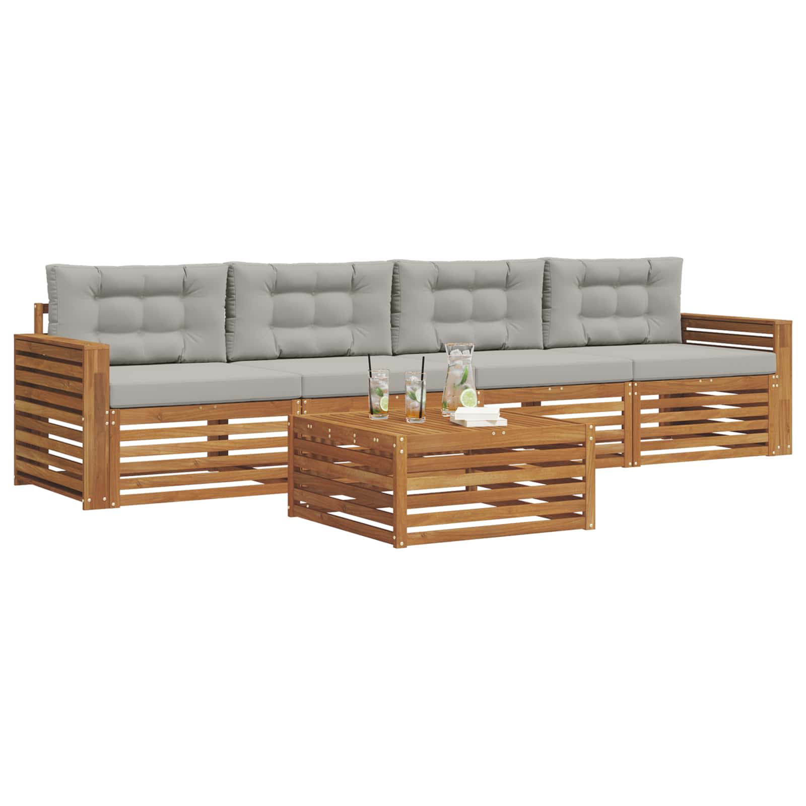 Set zunanjega pohištva združuje stil in funkcionalnost in je pravi osrednji del za vsak vrt ali teraso. Njegov moderni dizajn s čistimi linijami doda elegance in podpira sprostitev na prostem in druženje. Izdelan iz trdnega akacijevega lesa, ta set nudi trajnost in dolgoživost, kar ga postavlja na prvo mesto za vse, ki iščejo praktičnost z izpopolnjenim dizajnom zunanjega pohištva. Vzdržljiv trden akacijev les: Ta set zunanjega pohištva je narejen iz trdnega akacijevega lesa, znanega po svoji vzdržljivosti in odpornosti na razne vremenske dejavnike. Trdna konstrukcija zagotavlja dolgo življensko dobo in zaupanje, obenem pa naravna barva obogati vaš vrt ali teraso. Oblikovanje, odporno na vreme: Lakirana površina nudi zaščito pred soncem in rahlim dežjem. Polirana površina ohrani videz in funkcionalnost ter podaljša življenjsko dobo pohištva na vaši terasi ali dvorišču. Komponente in oblikovanje: Vsak kos pohištva, od naslonjal do okvirjev, je zasnovan za stil in udobje. Podporne funkcije ponujajo dodaten komfort, medtem ko celotna zasnova zagotavlja vizualno kohezijo, kar je primerno za razne zunanje priložnosti. Udobje in prilagodljivost: Modularni dizajn omogoča različne nastavitve, primerne za vsako priložnost. Super za sprostitev, družabne dogodke ali mirno branje, ta set se brez napora prilagodi vsaki zunanji okolici. Enostavno vzdrževanje in skrb: Da ohranite pohištvo v top stanju, ga lahko obrišete z vlažno krpo in se izogibate ostrim čistilom. Redno vzdrževanje pomaga podaljšati življenjsko dobo in ohraniti videz pohištva.