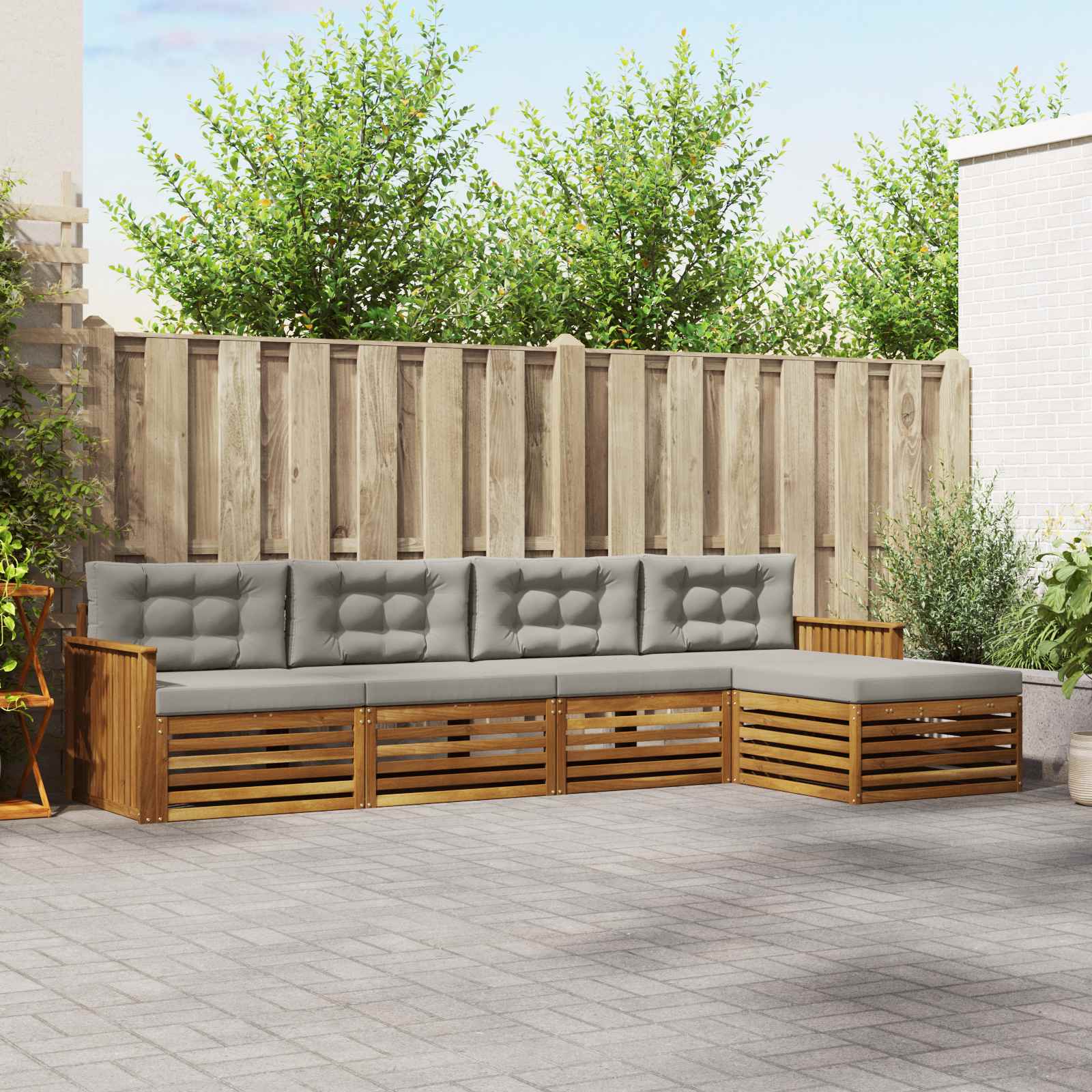 Ta zunanji pohištveni set združuje slog in funkcionalnost ter postane osrednja točka vsakega vrta ali terase. Njegova moderna zasnova s čistimi linijami in minimalnimi detajli doda eleganco, hkrati pa omogoča sprostitev in druženje na prostem. Izdelan iz trdnega akacijevega lesa, set zagotavlja dolgotrajno trdnost in privlačnost, kar ga dela odlično izbiro za tiste, ki iščejo tako praktičnost kot prefinjen dizajn v zunanjem pohištvu. Vzdržljiv trden akacijev les: Ta kavč set je narejen iz trdnega akacijevega lesa, znanega po svoji vzdržljivosti in odpornosti. Trdna konstrukcija nudi stabilnost, naravni ton pa doda toplino vsakemu vrtu ali terasi. Oblikovanje odporne na vreme: Lakirana površina nudi dodatno zaščito pred soncem in dežjem. Poliran zaključek ohranja izgled in funkcionalnost, kar zagotavlja dolgotrajno vzdržljivost za vaš zunanji prostor. Komponente in zasnova: Vsaka komponenta, od rokonaslonov do naslonov, je zasnovana za slog in funkcionalnost. Zaradi podpornih funkcij je sedenje bolj udobno, celotna zasnova pa ustvarja harmonično vizualno celoto, primerno za različne dogodke. Udobje in vsestranskost: Modularna zasnova omogoča prilagodljive postavitve, primerne za različne prostore. Čudovito je za sprostitev, druženje ali branje, ta set se prilagodi vsakemu okolju in maksimira udobje. Enostavno vzdrževanje: Da ohranite pohištvo v dobrem stanju, ga obrišite z vlažno krpo in se izogibajte močnim čistilom. Redno vzdrževanje ohranja videz in podaljša življenjsko dobo pohištva.