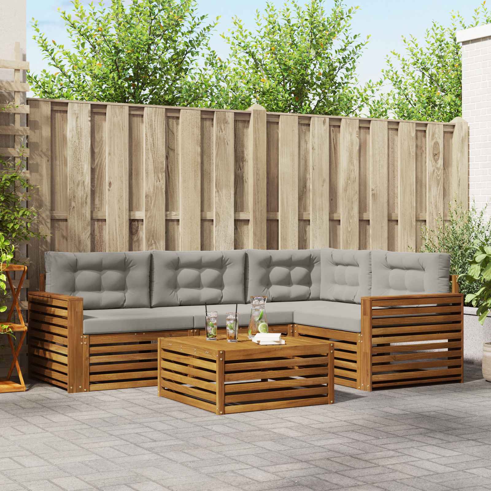 Komplet zunanjega pohištva združuje stil in funkcionalnost ter se lepo prilega vsakemu vrtu ali terasi. Njegova moderna zasnova s čistimi linijami in minimalno okrasjem dodaja eleganco ter omogoča sprostitev in druženje na prostem. Celega ga izdelajo iz trdnega akacijevega lesa, kar zagotavlja trpežnost in dolgotrajno privlačnost, kar je popolna izbira za tiste, ki iščejo praktično, a tudi lepo pohištvo za na prostem. Vzdržljiv trden akacijev les: Ta set je izdelan iz trdnega akacijevega lesa, poznanega po svoji trpežnosti in odpornosti na zunanje dejavnike. Stabilna konstrukcija nudi zanesljivo oporo in dolgotrajno stabilnost, naravna barva pa obogati vsak vrt ali teraso. Oblikovanje, odporno na vreme: Set ima lakirano površino, ki ponuja dodatno zaščito pred soncem in dežjem ter okoljskimi vplivi. Polirana obdelava ohranja privlačnost in funkcionalnost, kar zagotavlja dolgotrajno trpežnost za vaš vrt ali dvorišče. Komponente in zasnova: Vsak del, od naslonov do sedežnih površin, je zasnovan za estetiko in udobje. Opora nudi dodatno udobje ter ustvarja usklajen dizajn, primeren za razne zunanje dogodke. Udobje in vsestranskost: Modularna zasnova omogoča prilagodljive konfiguracije, ki ustrezajo vašim potrebam. Idealno za sprostitev, družabna srečanja ali mirno branje, ta set se zlahka prilagodi vsakemu zunanjemu okolju in maksimira udobje. Enostavna nega in vzdrževanje: Vzdrževanje pohištva je enostavno, dovolj je, da ga obrišite z vlažno krpo in se izogibate ostrim čistilom. Redna nega ohranja njegov videz in podaljšuje življenjsko dobo pohištva.